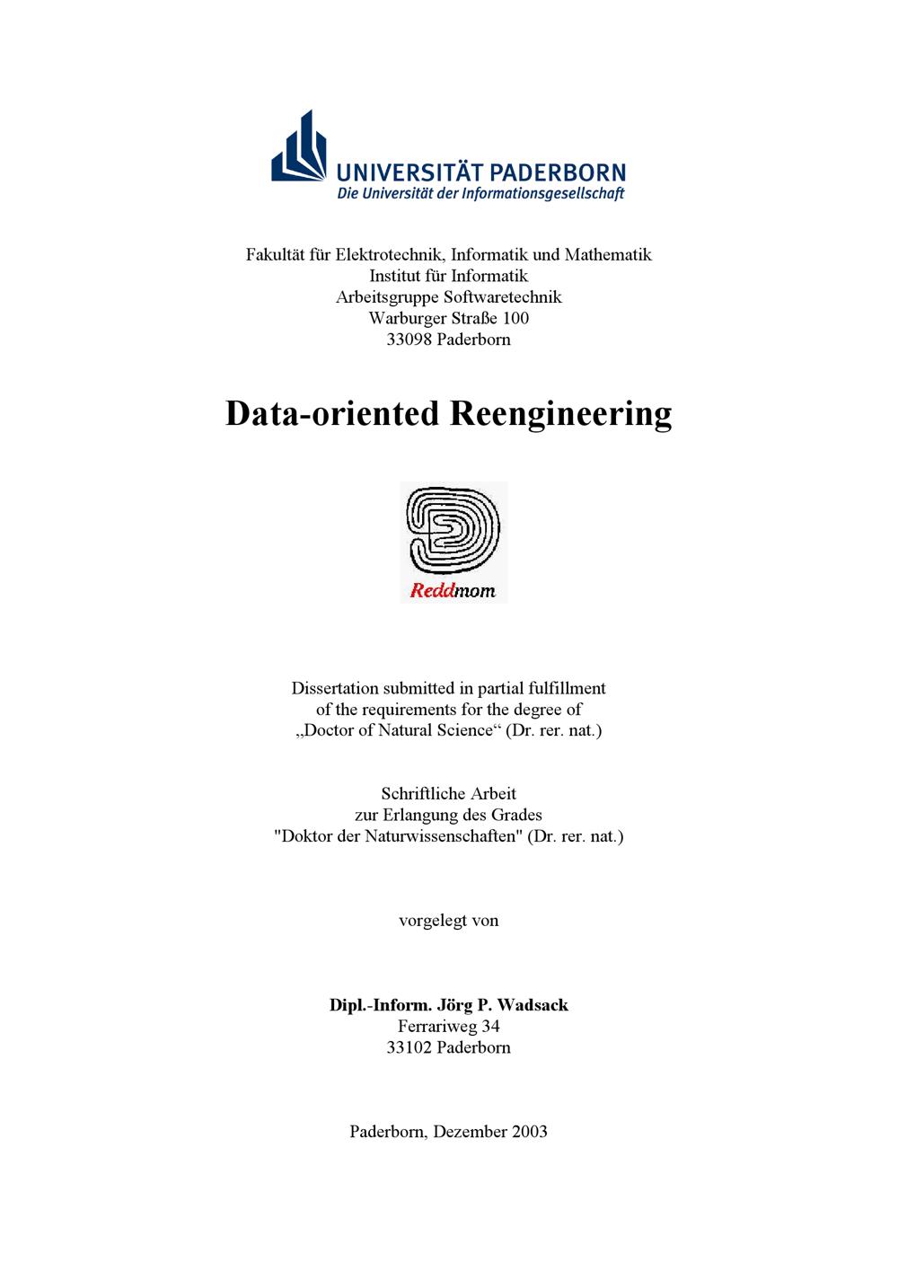 Data-oriented reengineering / von Jörg P. Wadsack