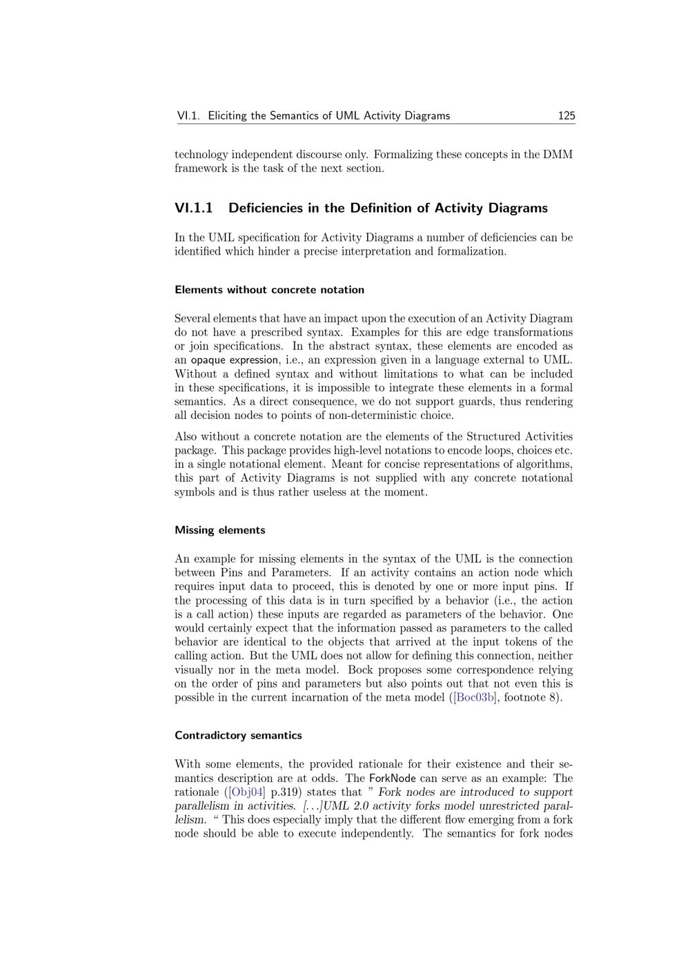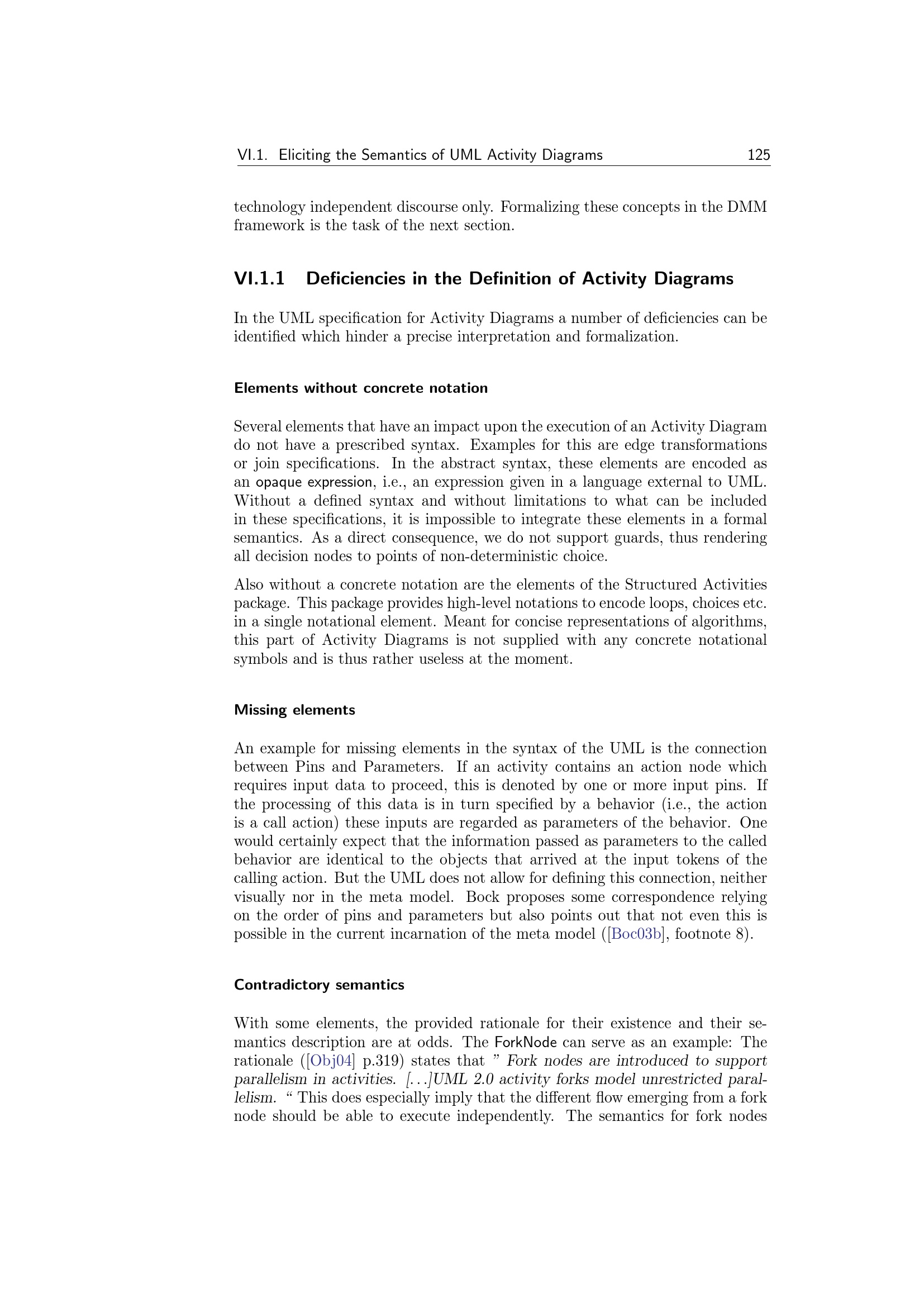 Deficiencies in the Definition of Activity Diagrams
