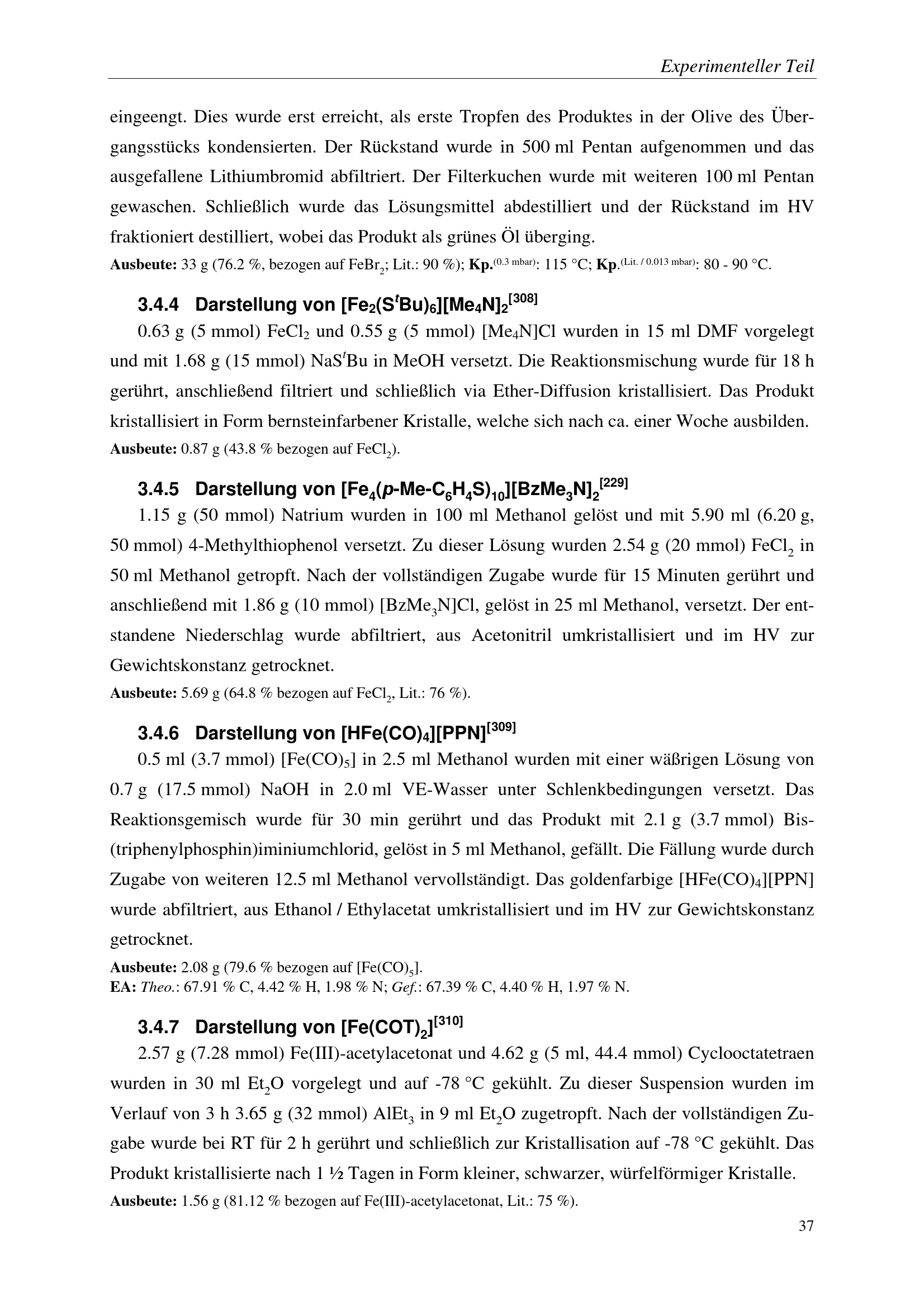 3.4.4 Darstellung von [Fe2(StBu)6][Me4N]2[ ]