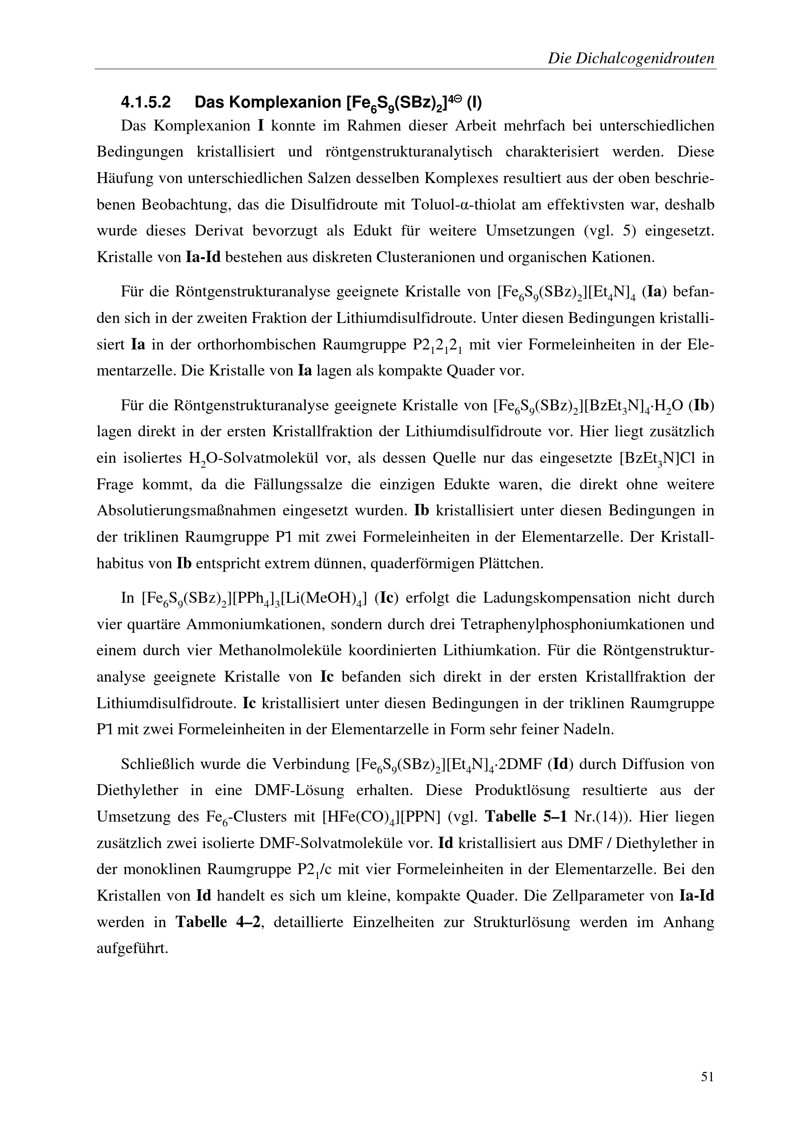 4.1.5.2 Das Komplexanion [Fe6S9(SBz)2]4( (I)