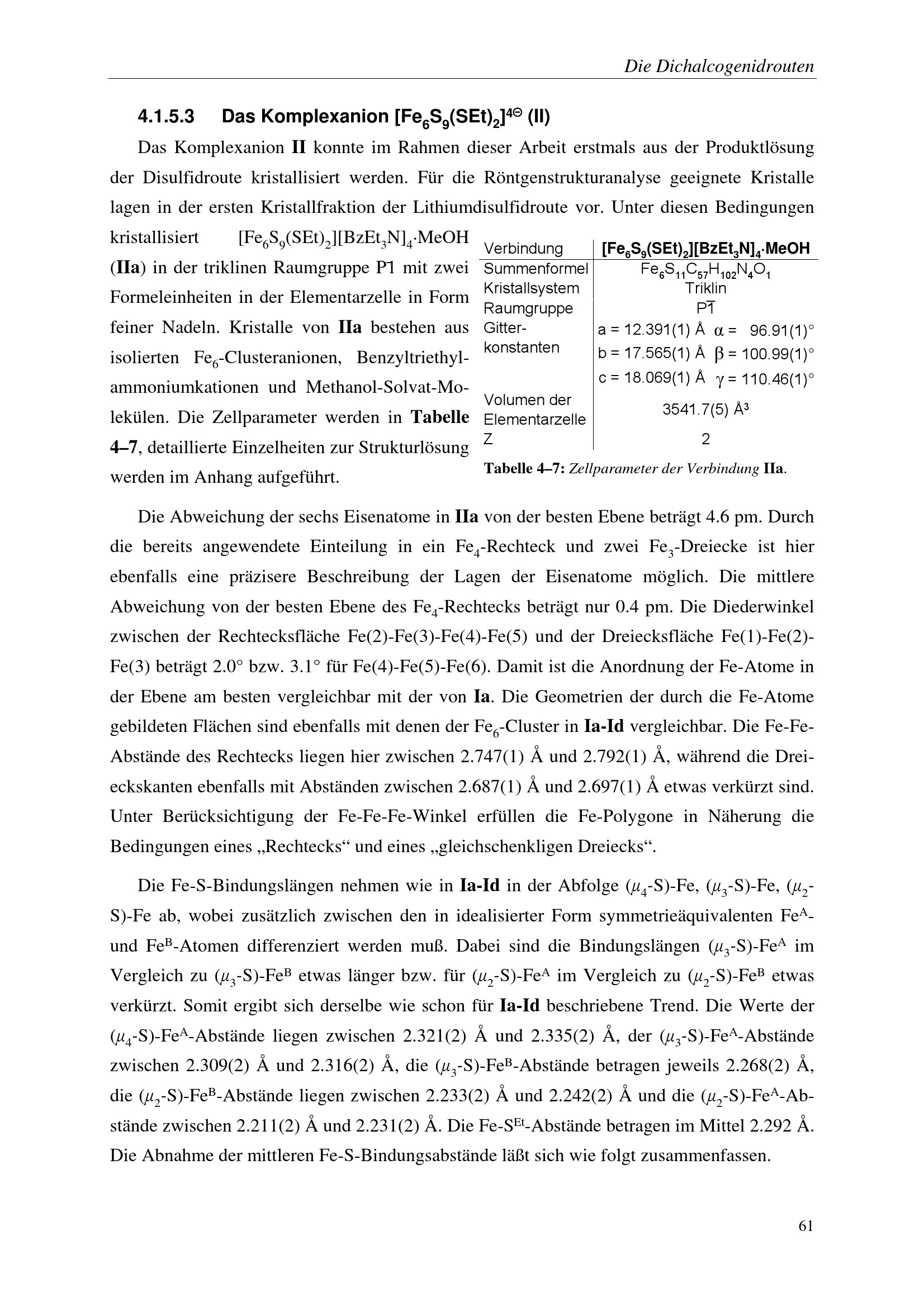4.1.5.3 Das Komplexanion [Fe6S9(SEt)2]4( (II)