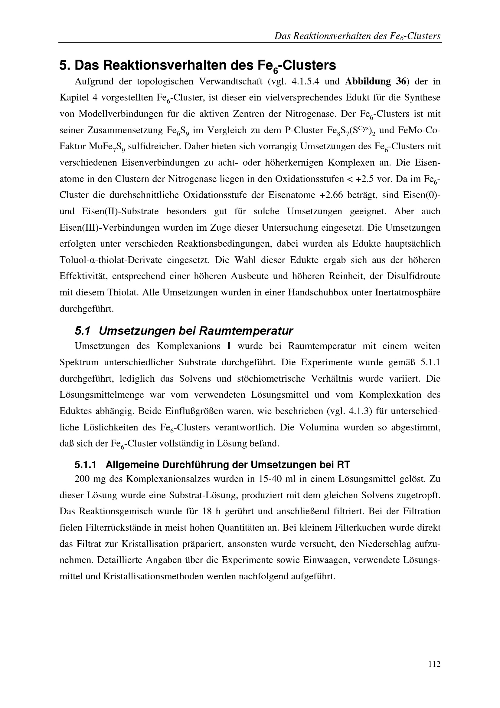 5. Das Reaktionsverhalten des Fe6-Clusters