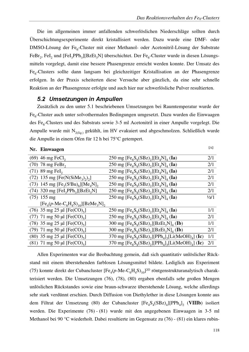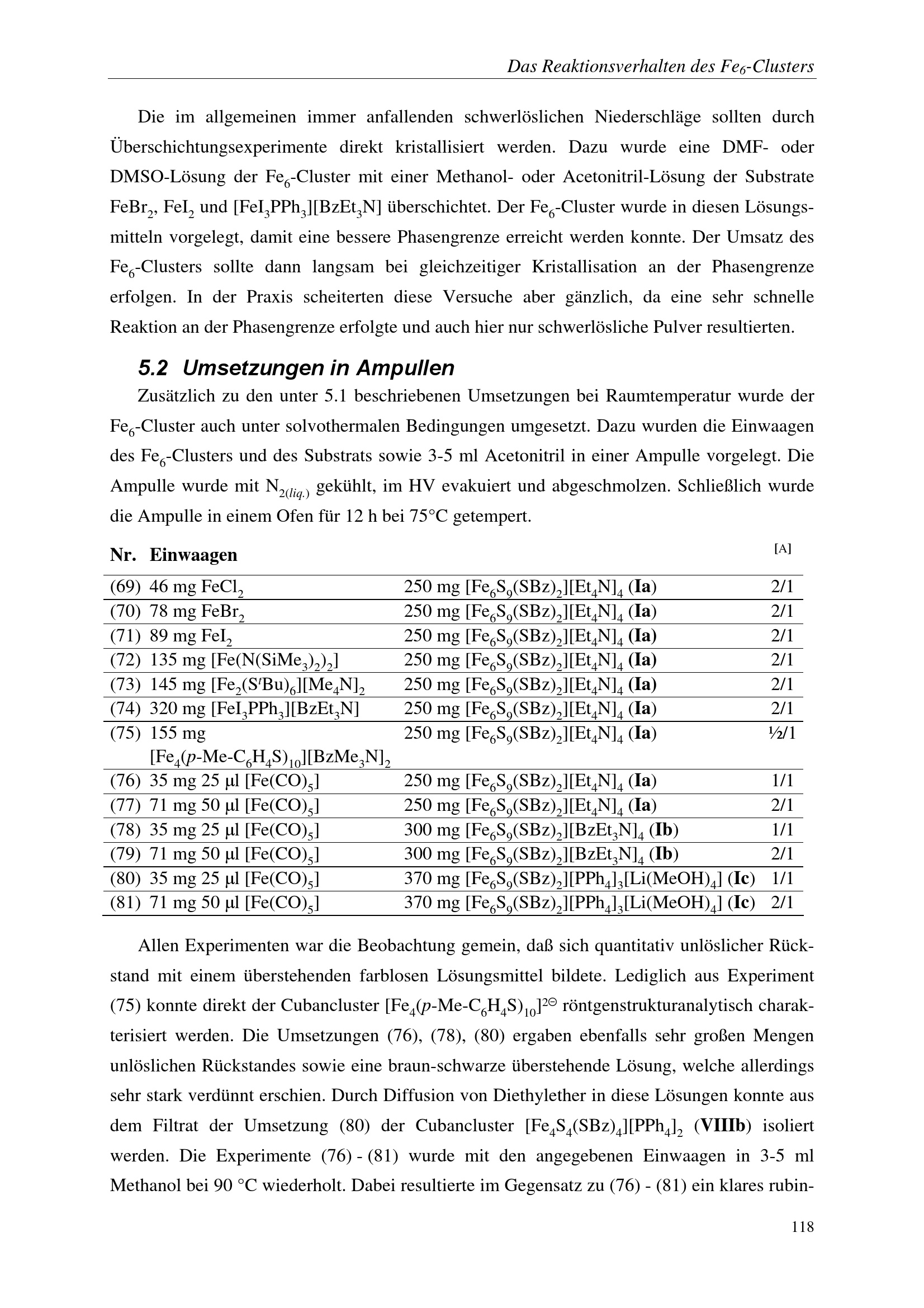 5. Das Reaktionsverhalten des Fe6-Clusters