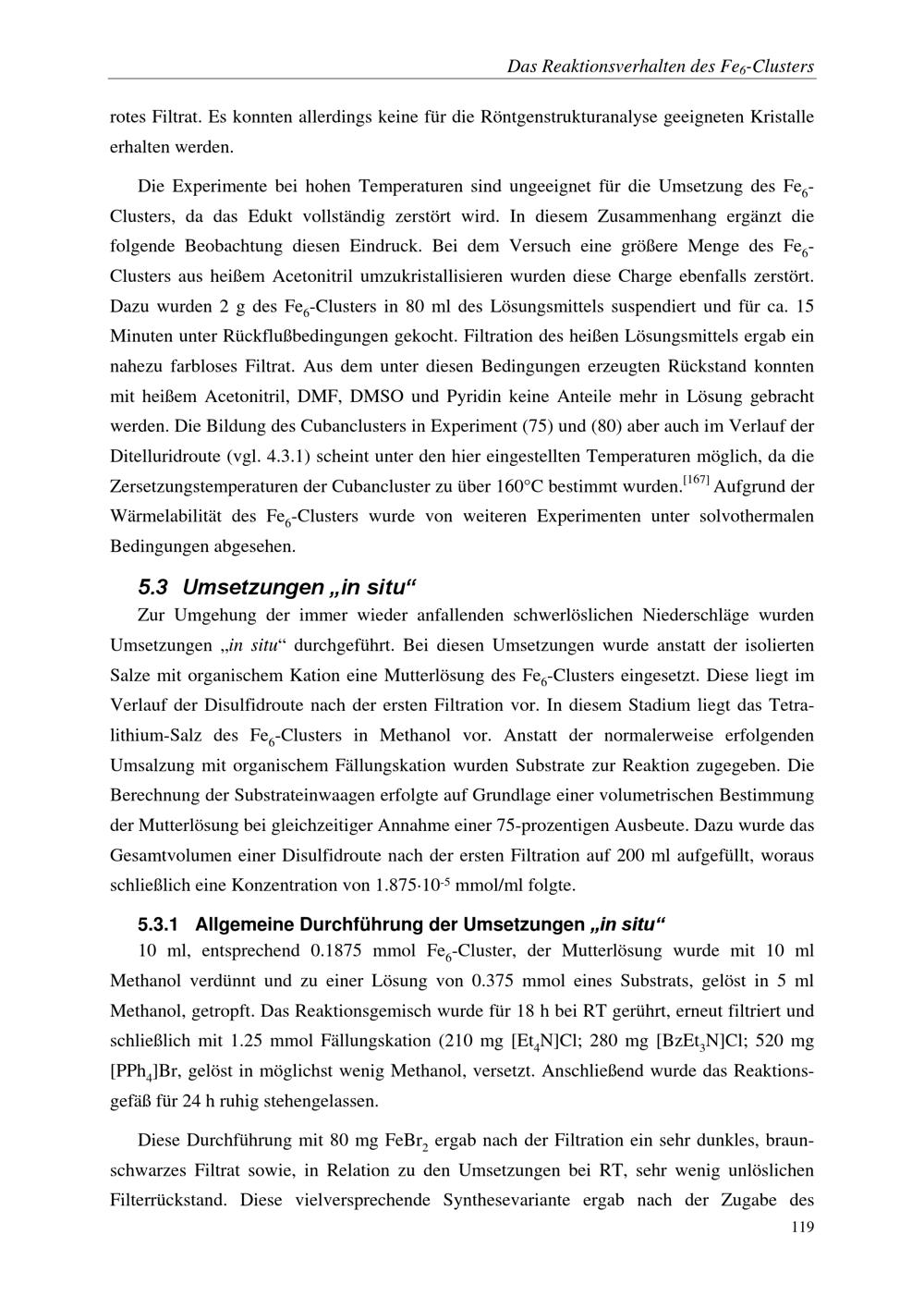 5. Das Reaktionsverhalten des Fe6-Clusters