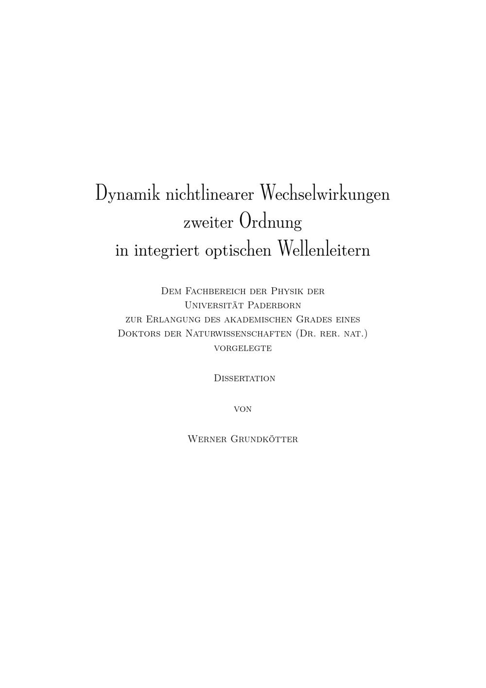 Dynamik nichtlinearer Wechselwirkungen zweiter Ordnung in integriert optischen Wellenleitern / von Werner Grundkötter