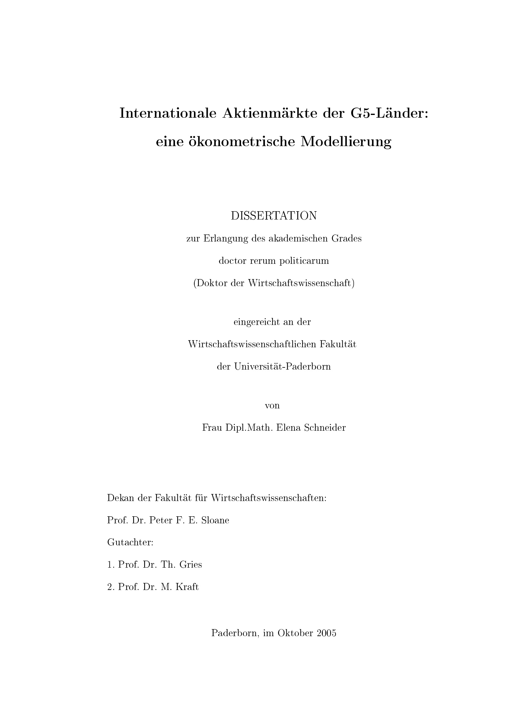 Internationale Aktienmärkte der G5-Länder : eine ökonometrische Modellierung / von Elena Schneider