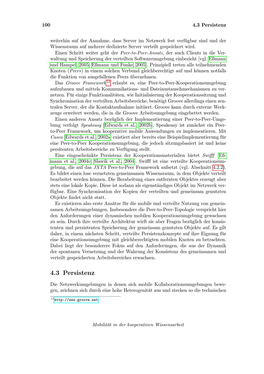 Mobilität in der kooperativen Wissensarbeit : Entwicklung einer Musterarchitektur für mobil-verteilte Wissensräume / Bernd Eßmann