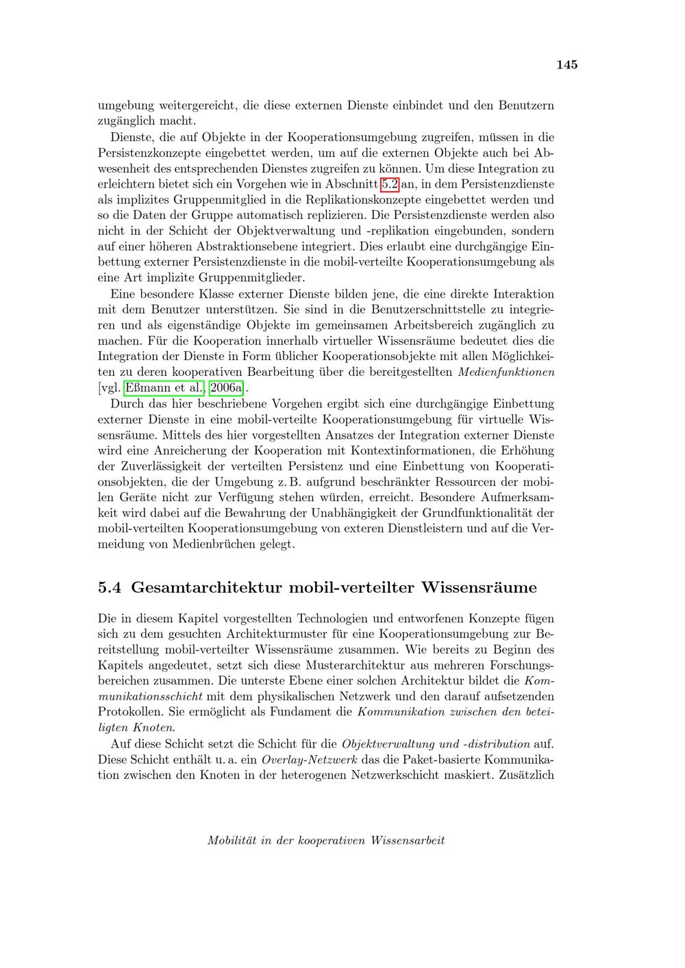 Mobilität in der kooperativen Wissensarbeit : Entwicklung einer Musterarchitektur für mobil-verteilte Wissensräume / Bernd Eßmann