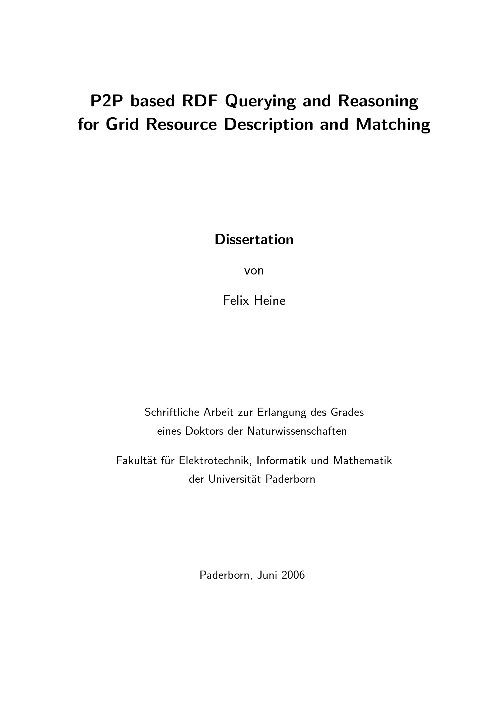 P2P based RDF querying and reasoning for Grid resource description and matching / von Felix Heine