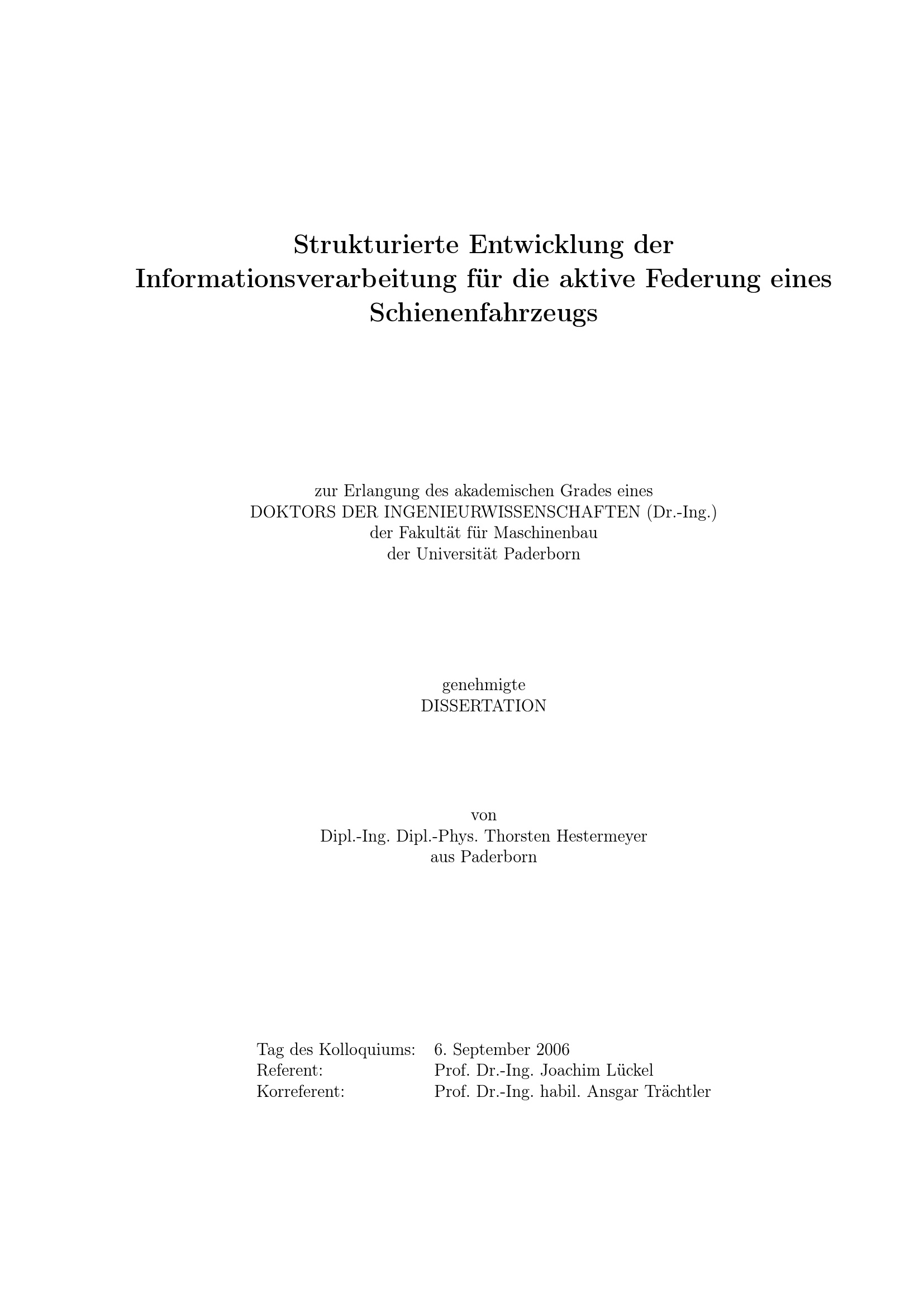 Strukturierte Entwicklung der Informationsverarbeitung für die aktive Federung eines Schienenfahrzeugs / von Thorsten Hestermeyer