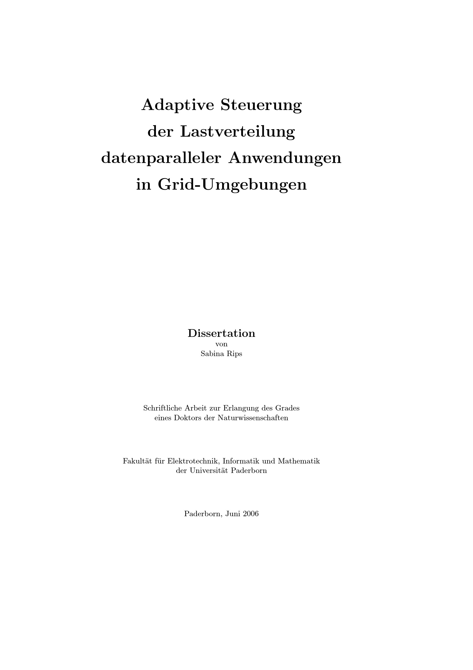 Adaptive Steuerung der Lastverteilung datenparalleler Anwendungen in Grid-Umgebungen / von Sabina Rips