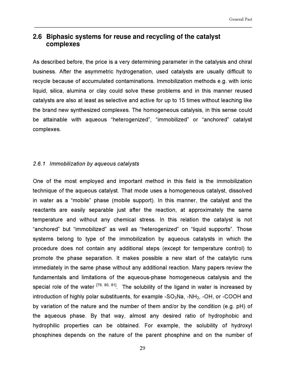 2.6 Biphasic systems for reuse and recycling of the catalyst complexes