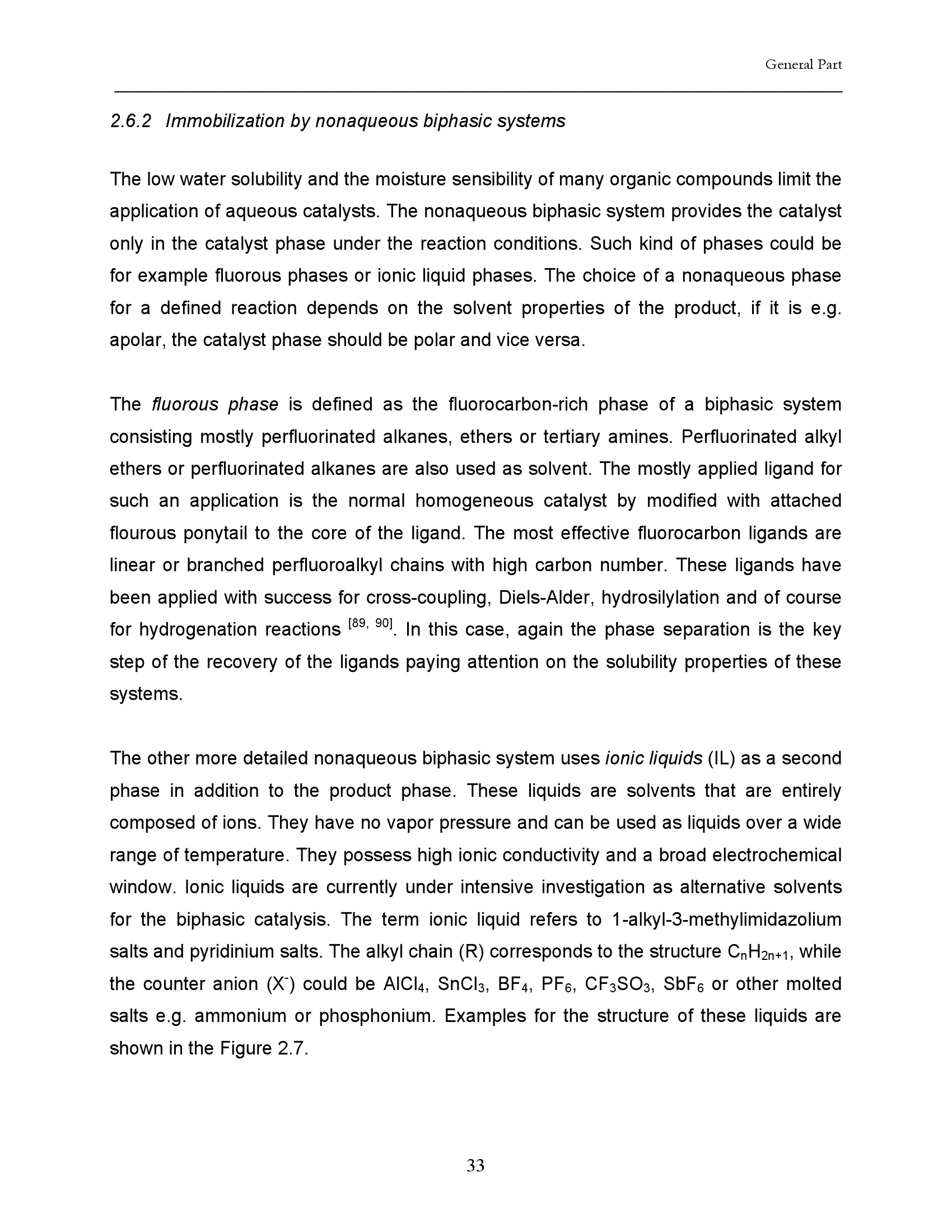 2.6 Biphasic systems for reuse and recycling of the catalyst complexes