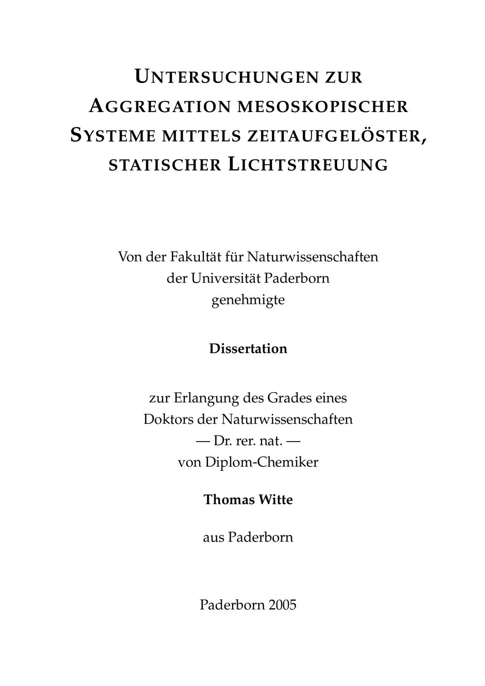 Untersuchungen zur Aggregation mesoskopischer Systeme mittels zeitaufgelöster, statischer Lichtstreuung / Thomas Witte