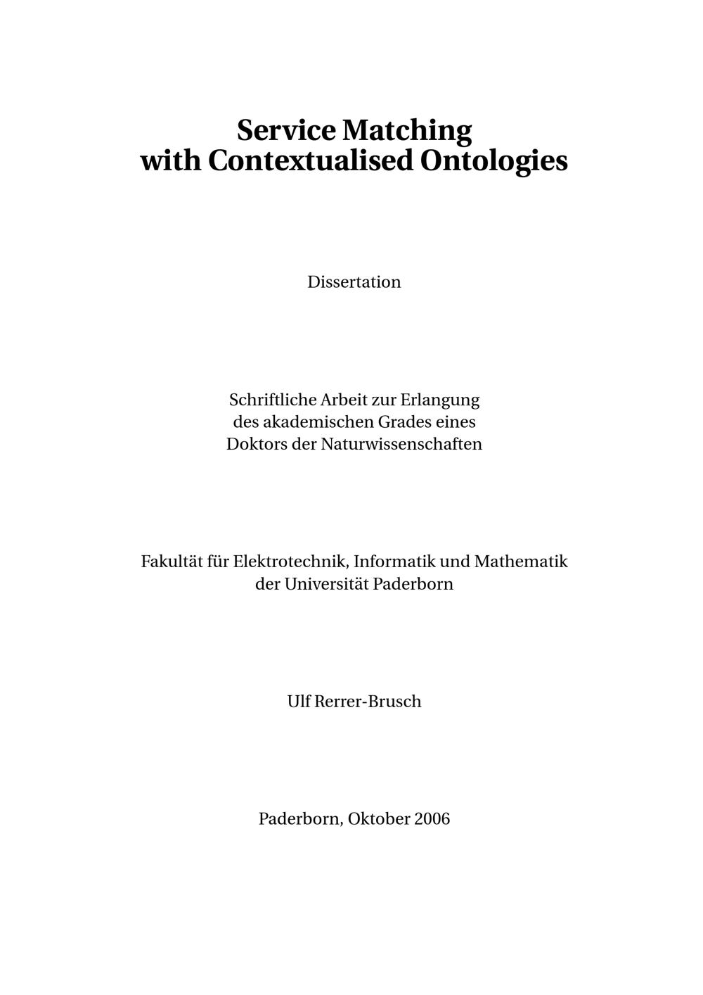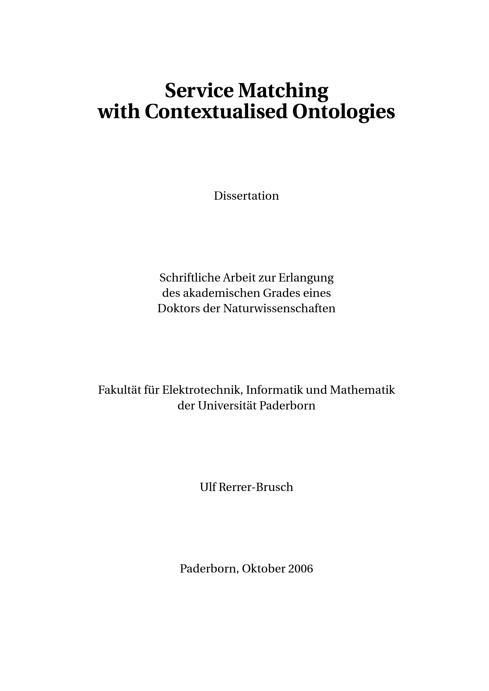 Service matching with contextualised ontologies / Ulf Rerrer-Brusch