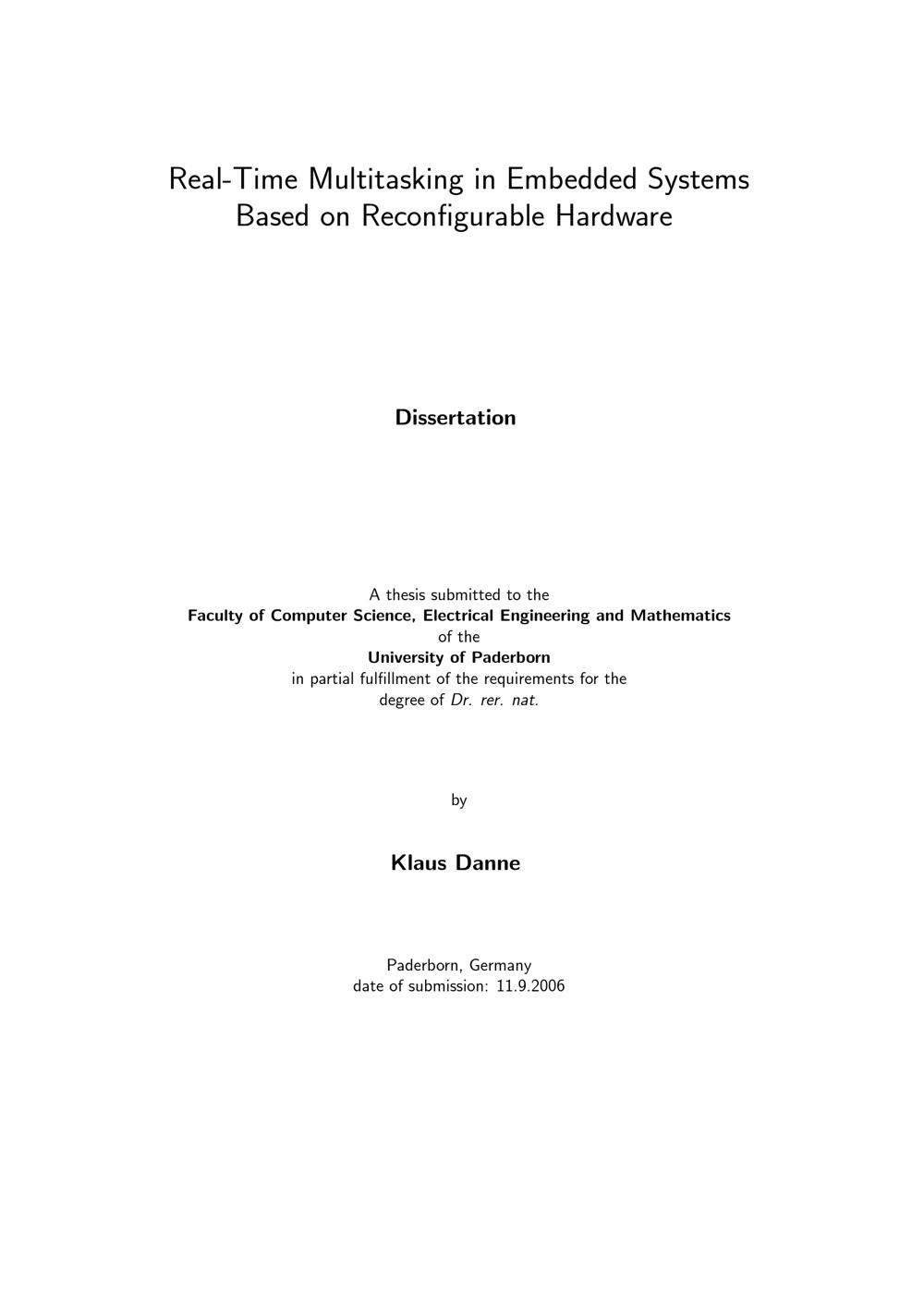 Real-time multitasking in embedded systems based on reconfigurable hardware / Klaus Danne