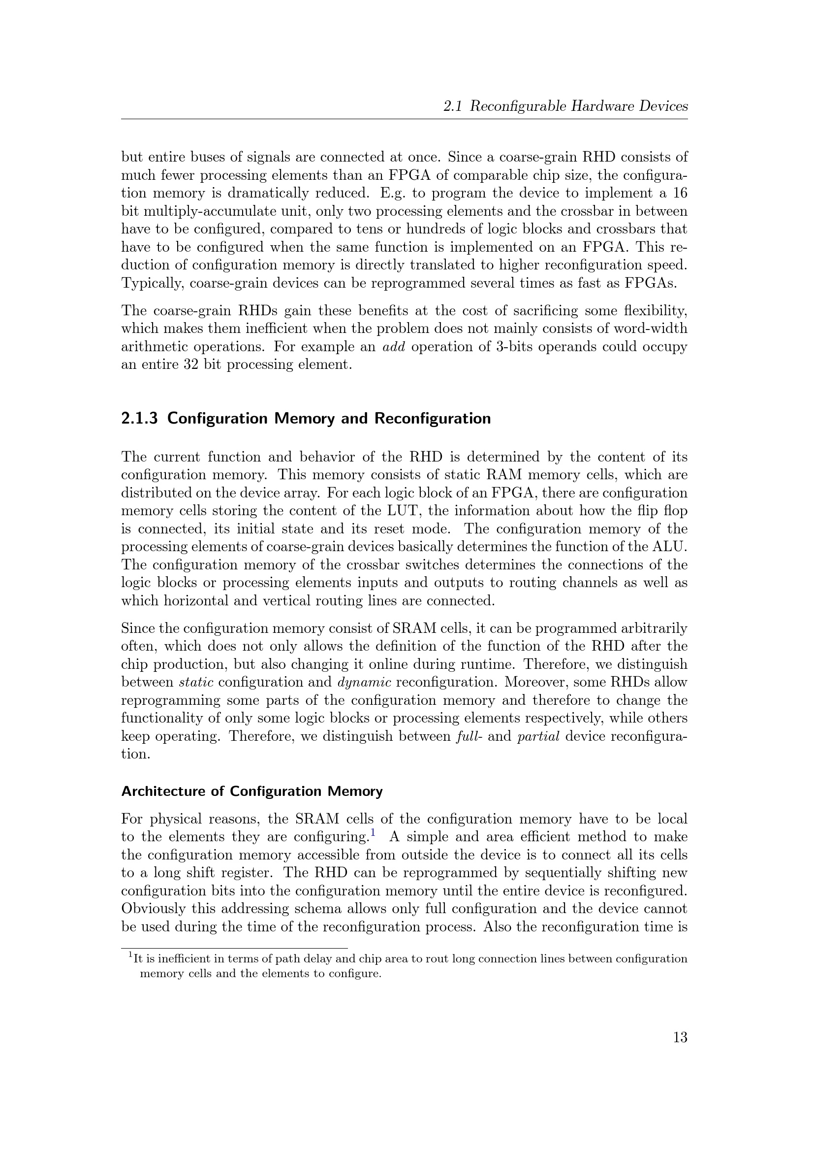 2.1.3 Configuration Memory and Reconfiguration
