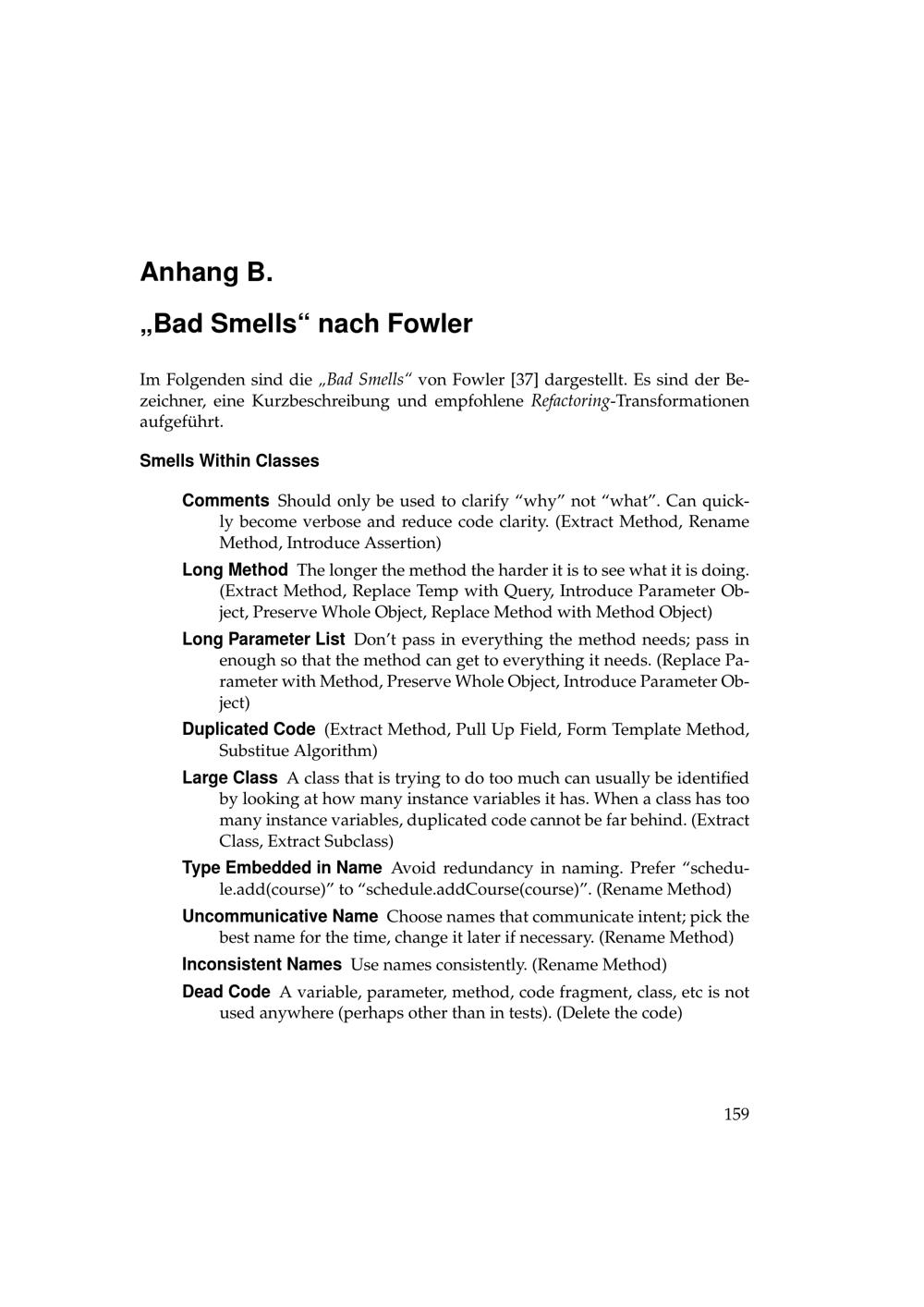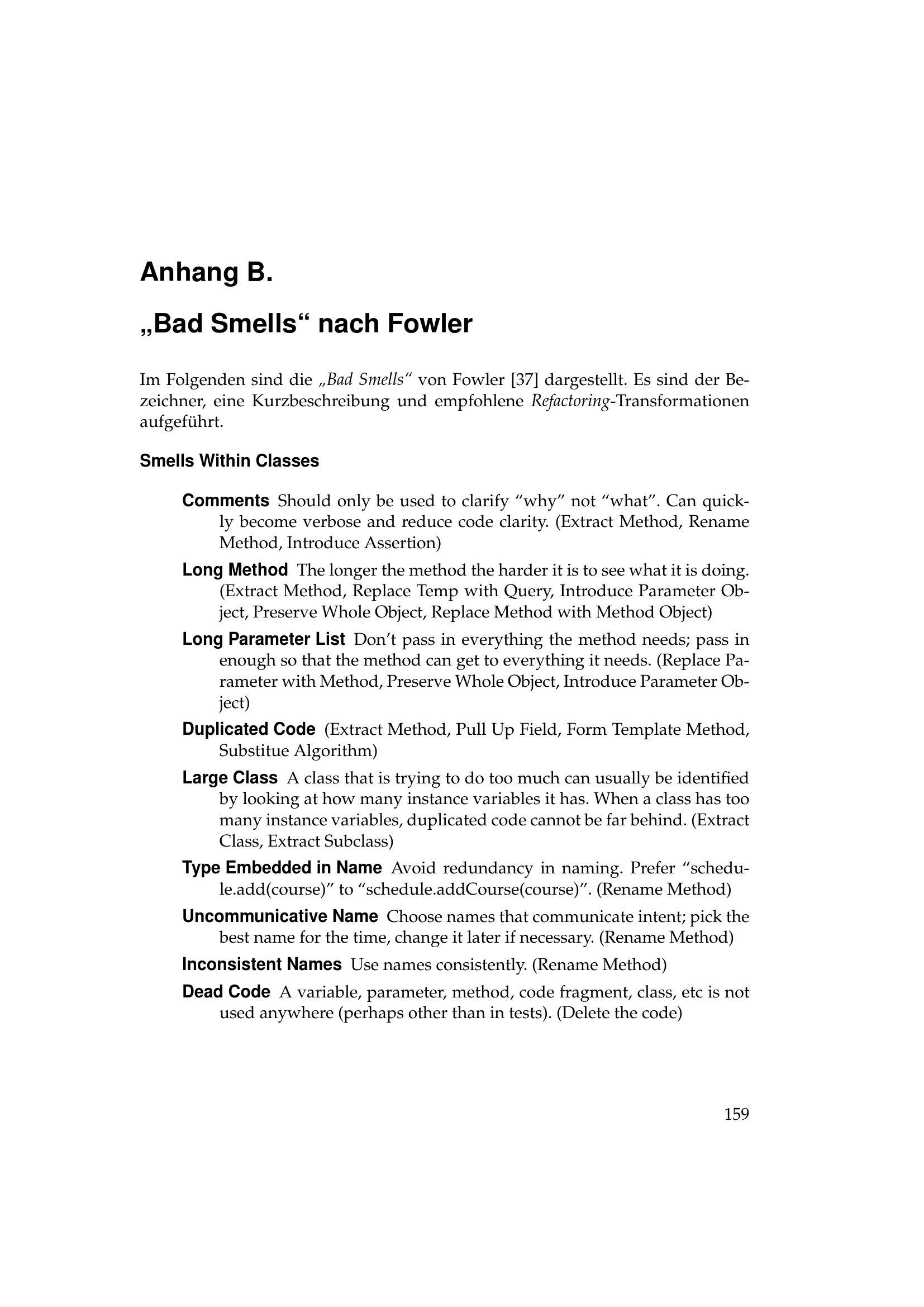 B „Bad Smells“ nach Fowler