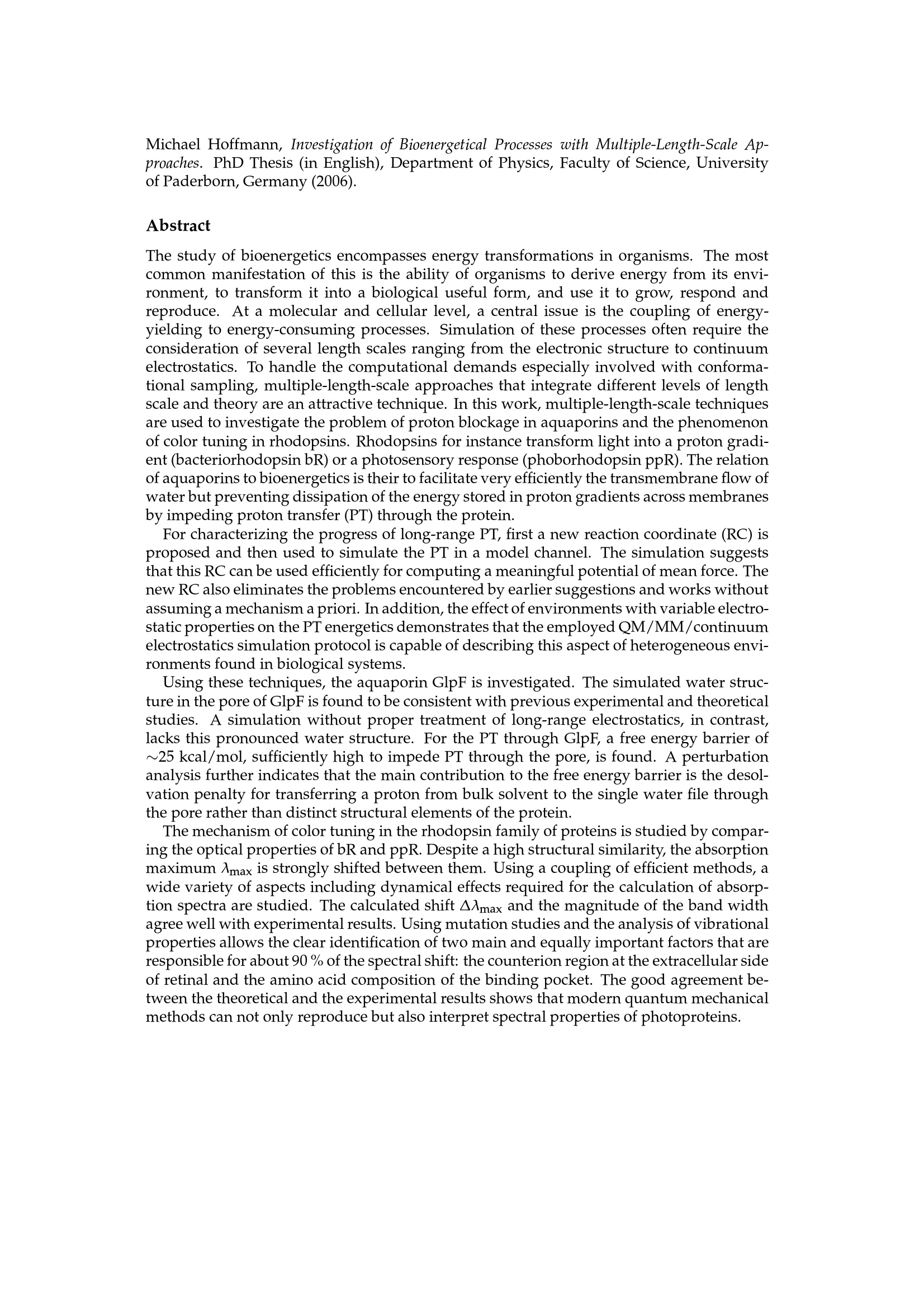 Investigation of bioenergetical processes with multiple-length-scale approaches / Michael Hoffmann