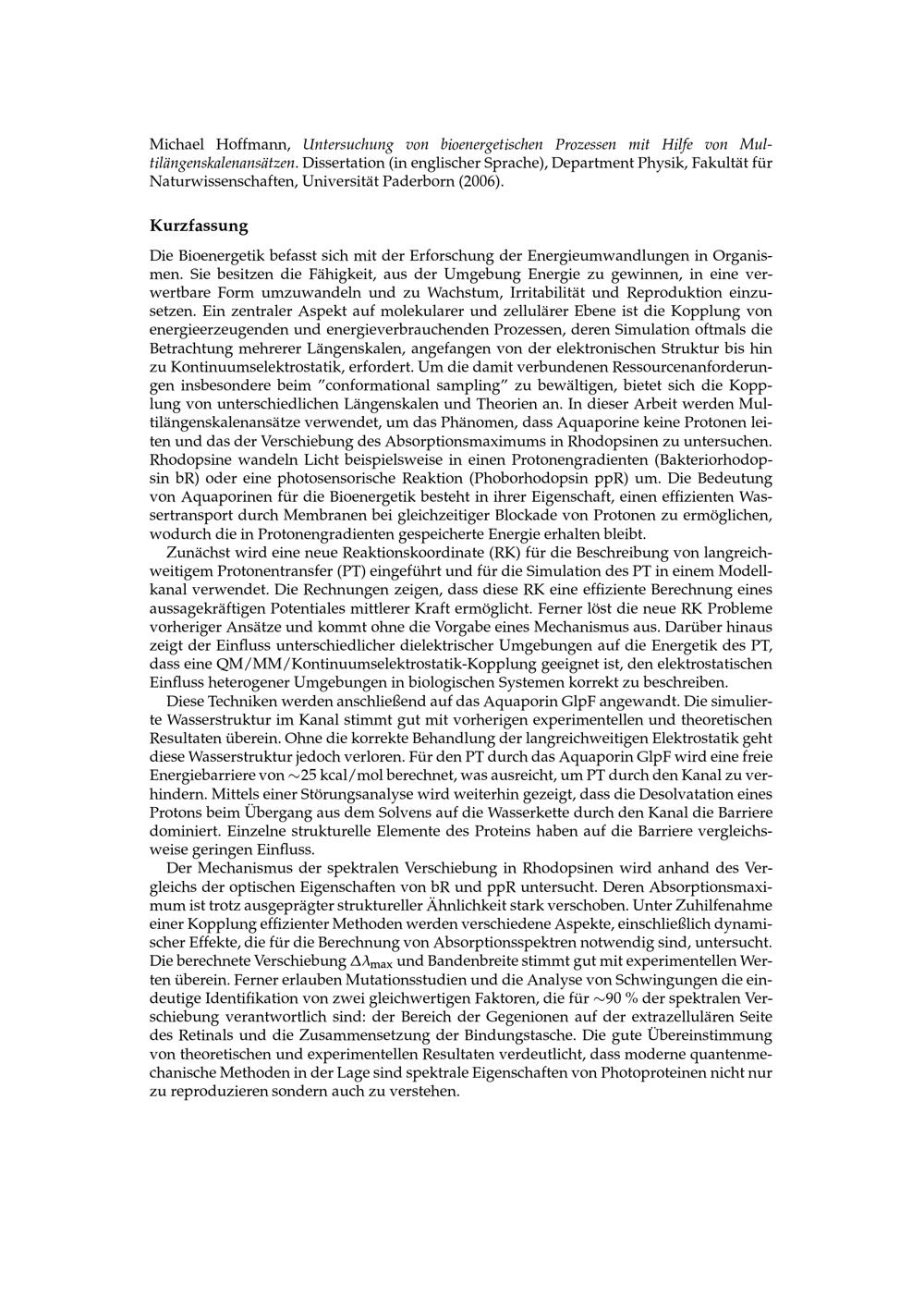 Investigation of bioenergetical processes with multiple-length-scale approaches / Michael Hoffmann