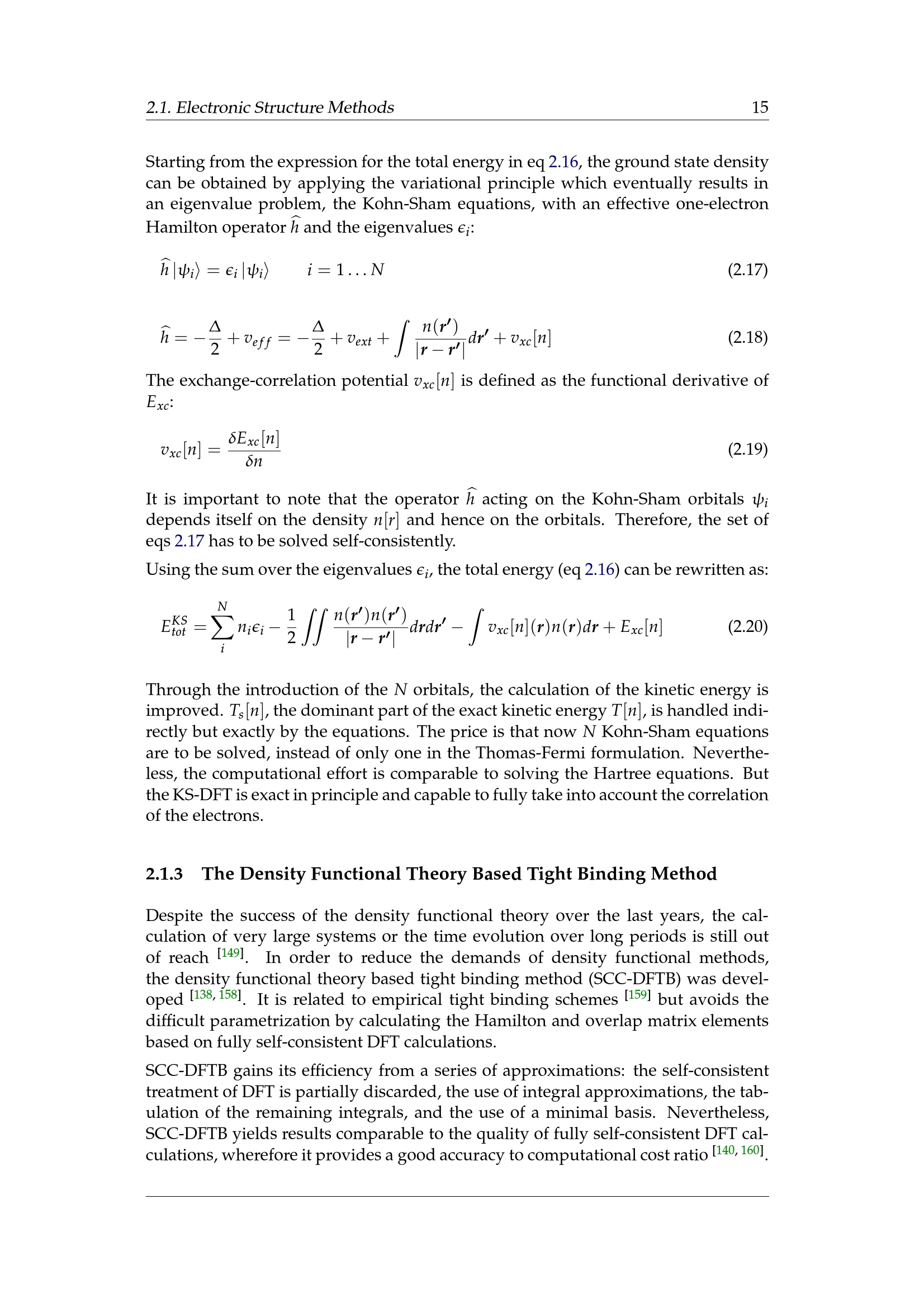 2.1.3 The Density Functional Theory Based Tight Binding Method