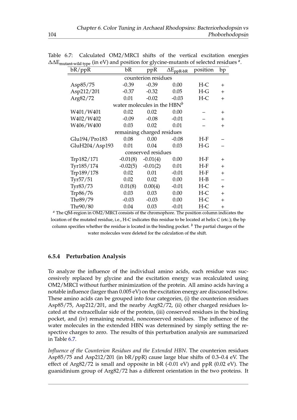6.5 Color Tuning between Bacteriorhodopsin and Phoborhodopsin