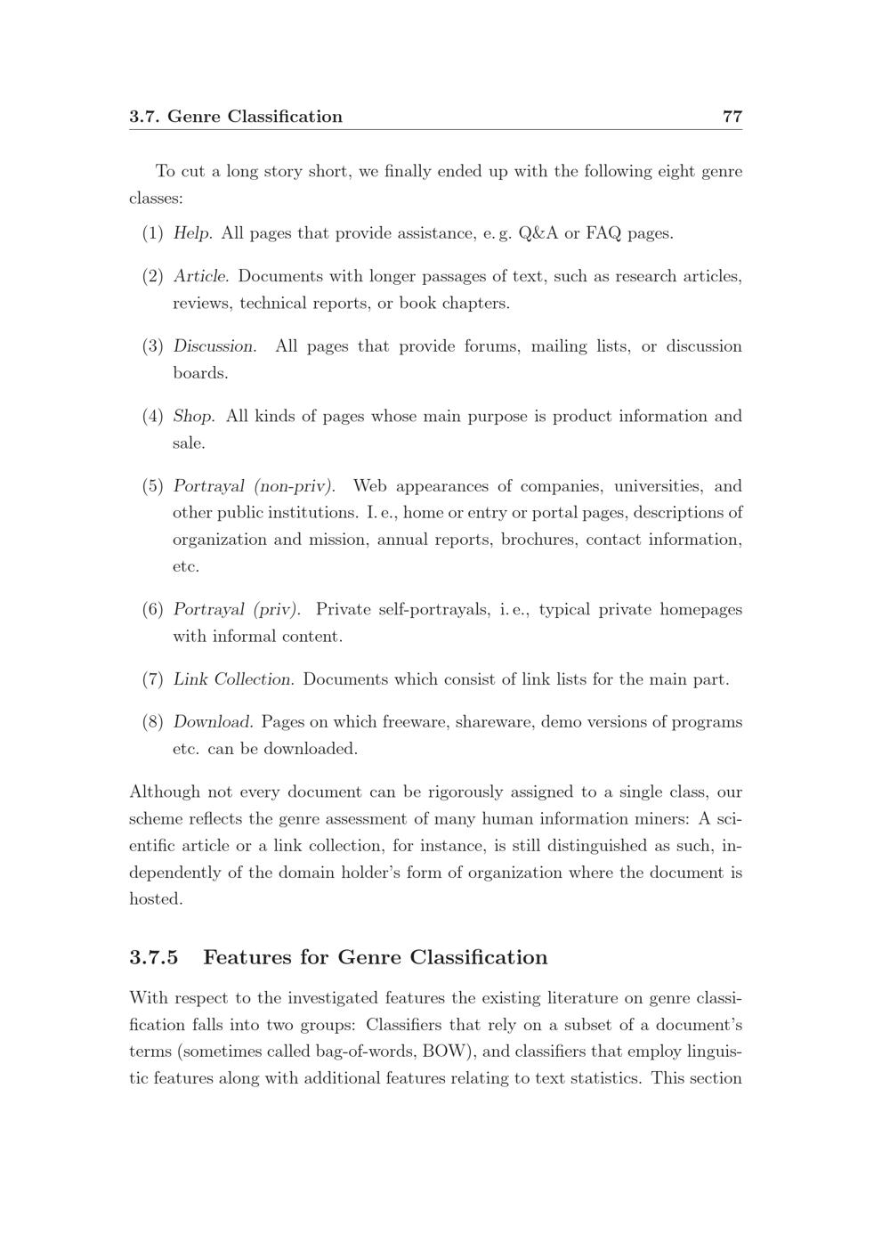 Features for Genre Classification