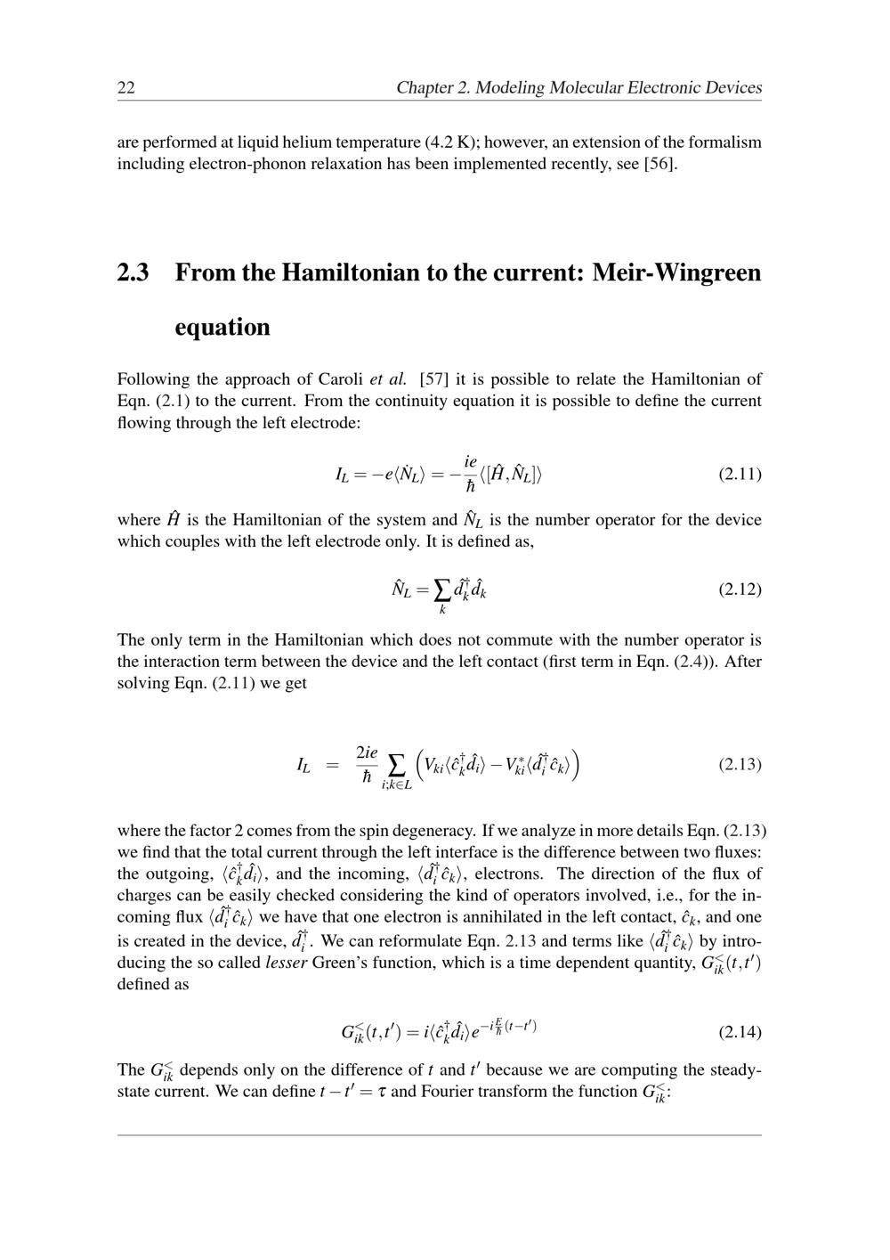 2.3 From the Hamiltonian to the current: Meir-Wingreen equation