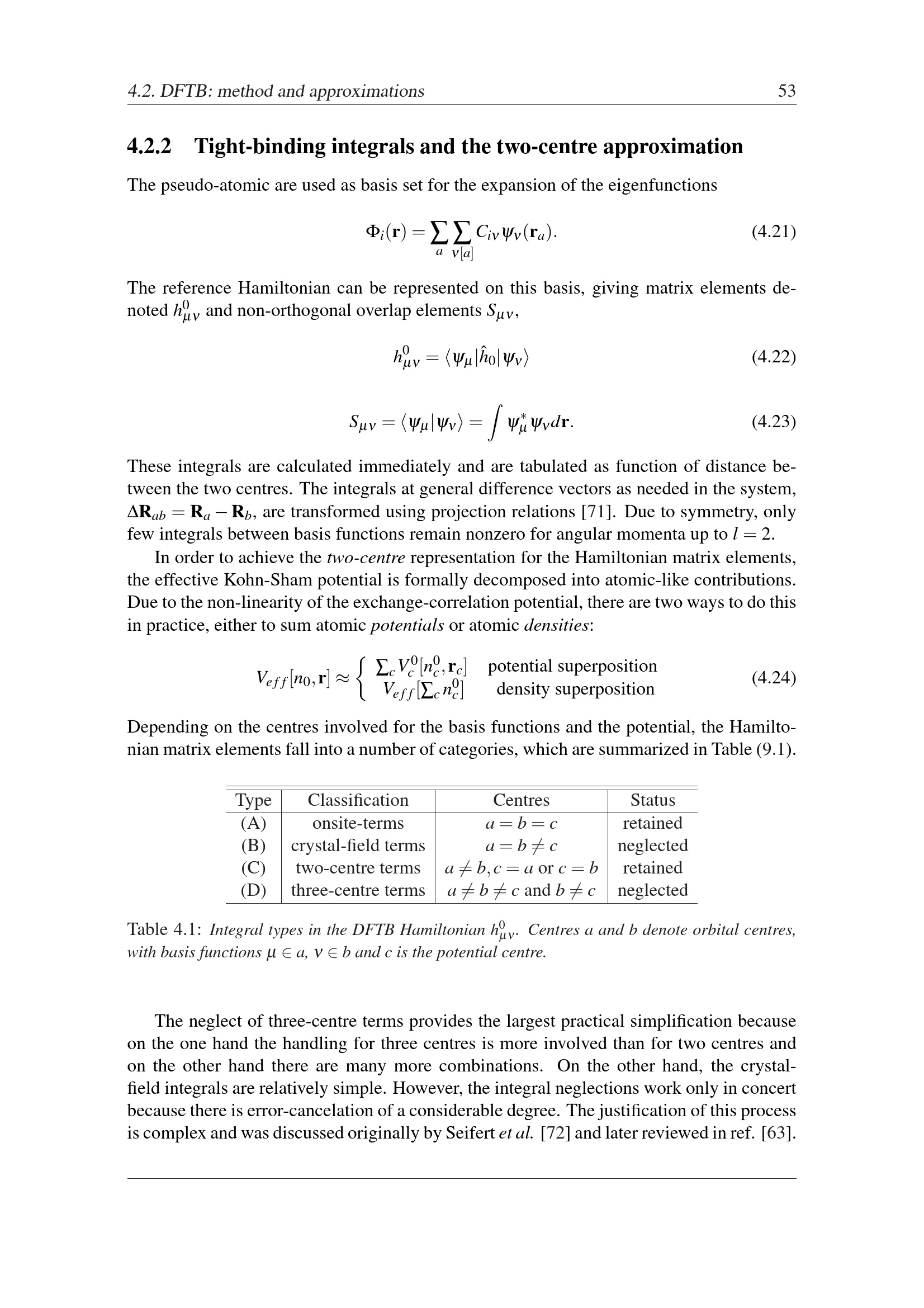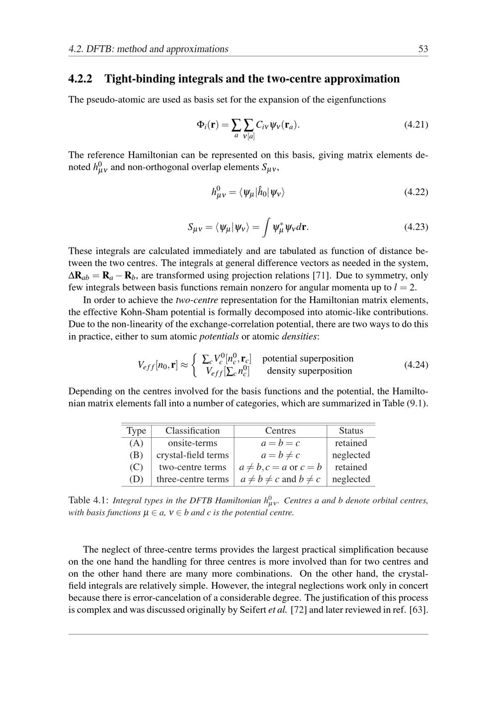 4.2.2 Tight-binding integrals and the two-centre approximation