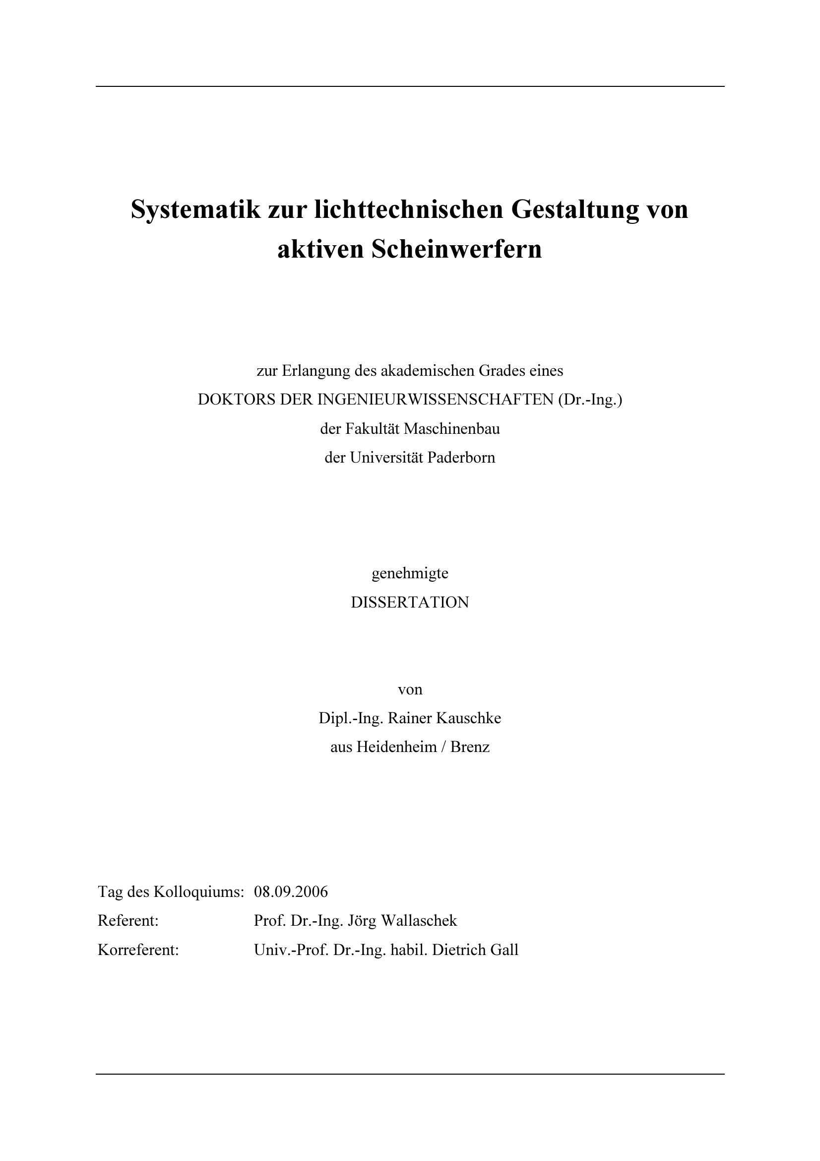 Systematik zur lichttechnischen Gestaltung von aktiven Scheinwerfern / Rainer Kauschke