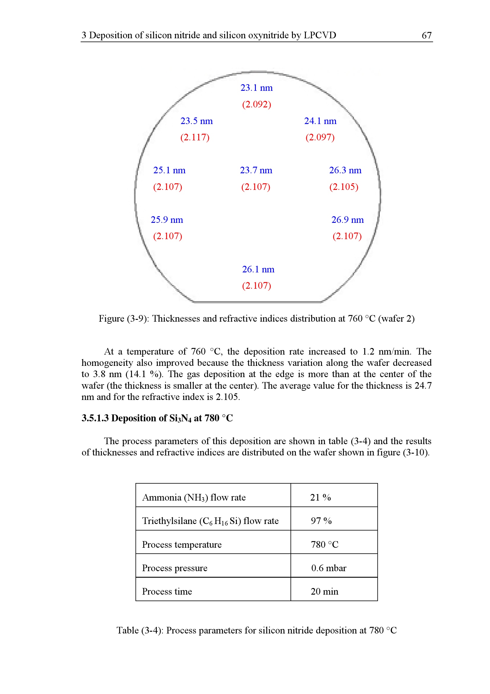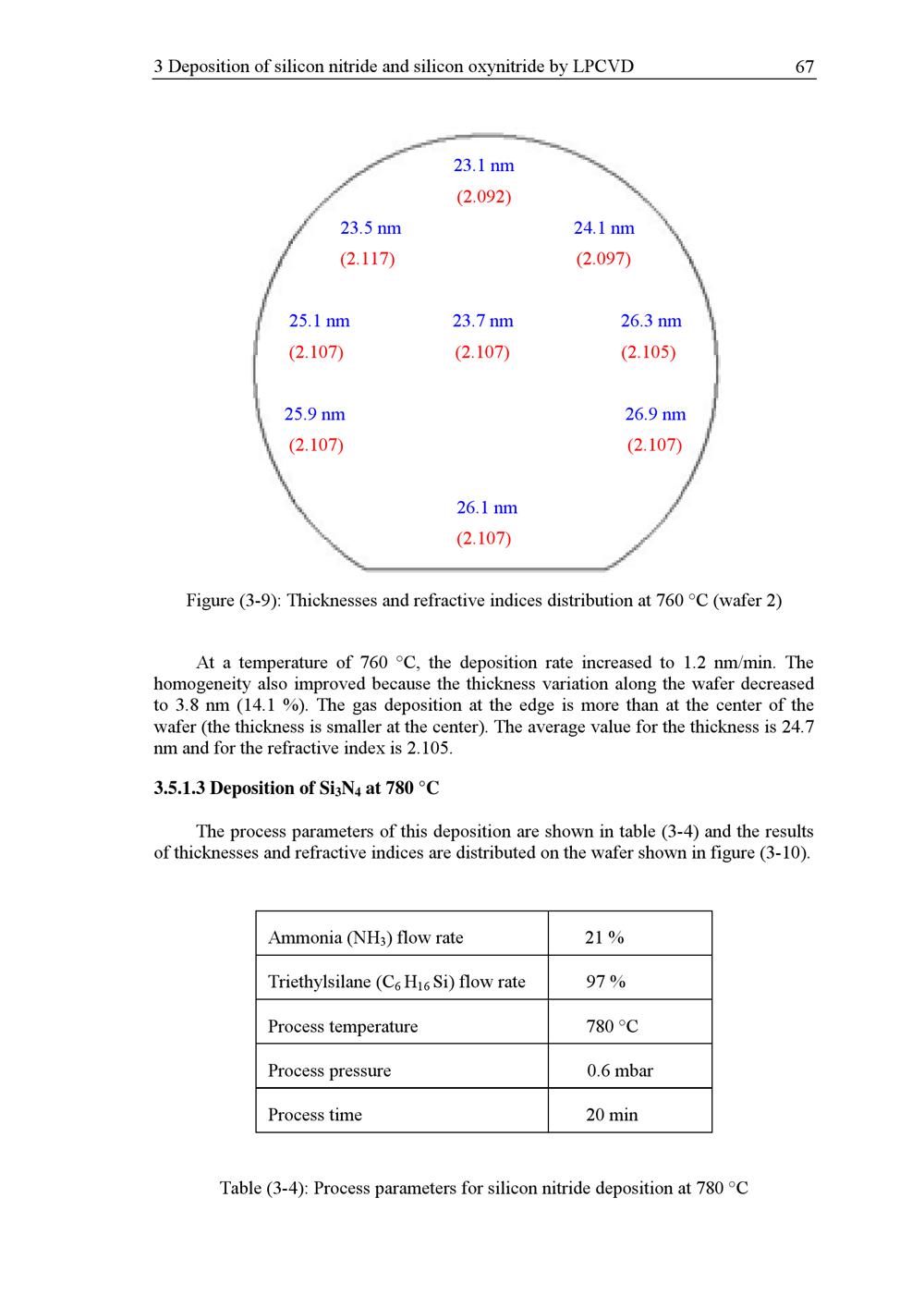 3.5.1.3 Deposition of Si3N4 at 780 °C