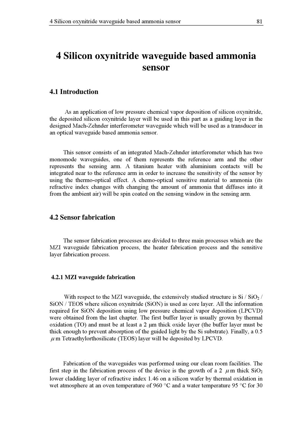 Low pressure chemical vapor deposition of silicon nitride and silicon oxynitride layers and their application in optical waveguide based chemical sensors / Ahmed Tamim