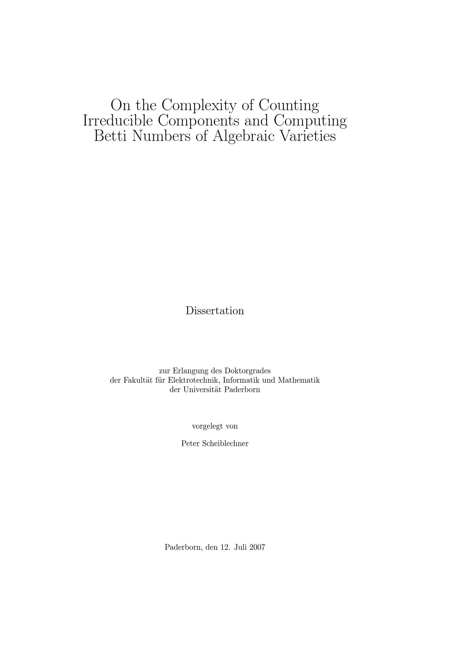 On the complexity of counting irreducible components and computing Betti numbers of algebraic varieties / Peter Scheiblechner