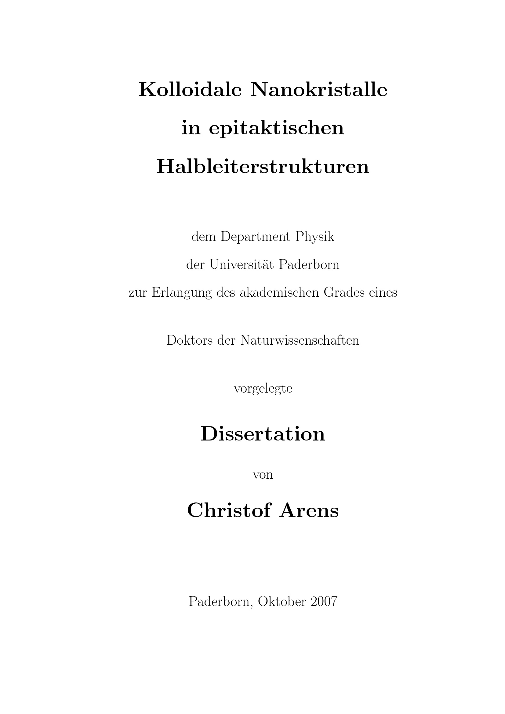 Kolloidale Nanokristalle in epitaktischen Halbleiterstrukturen / von Christof Arens