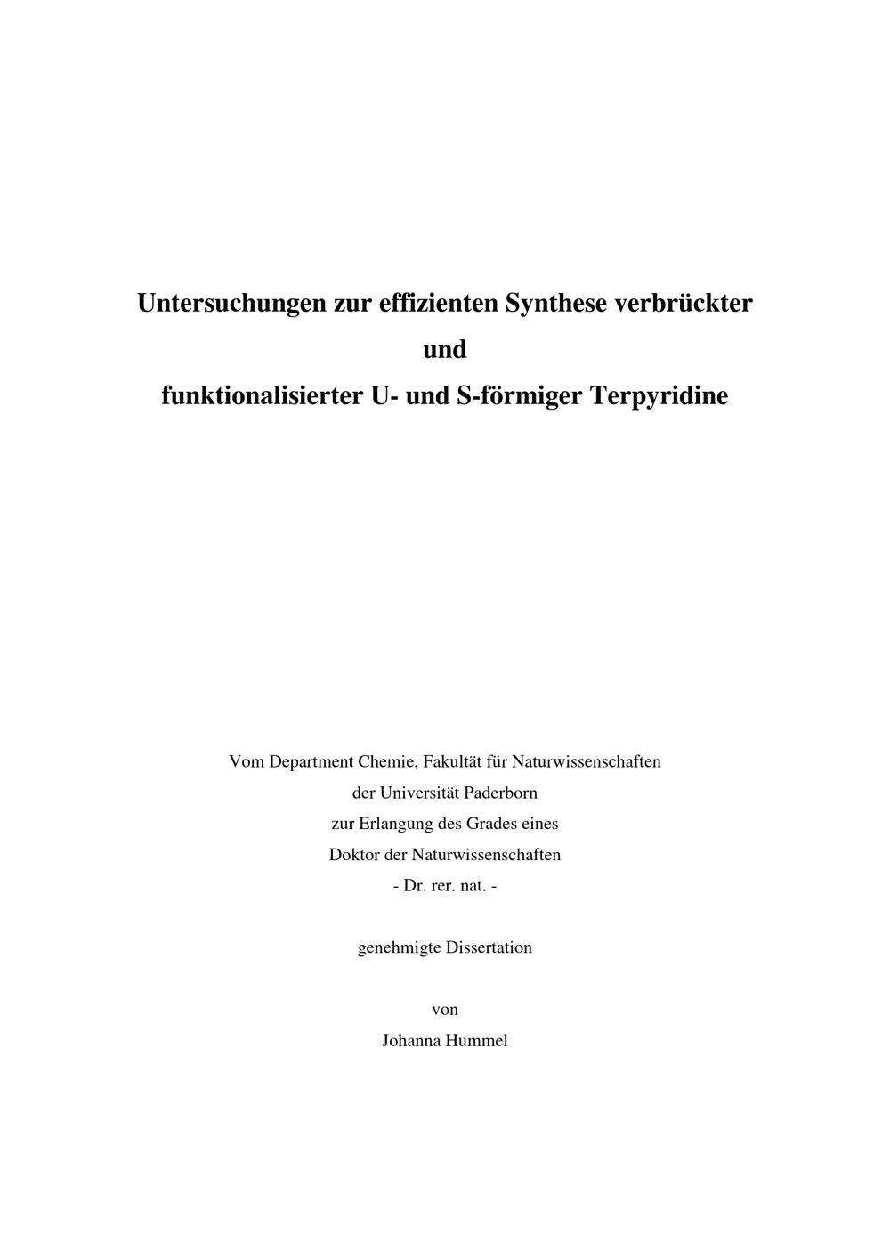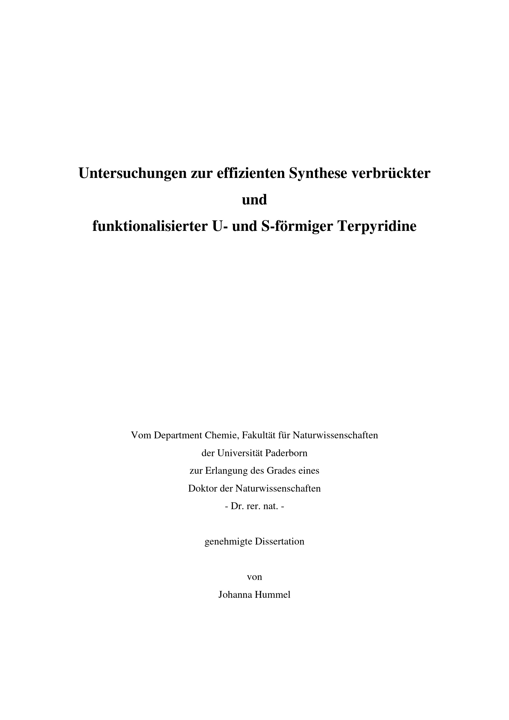 Untersuchungen zur effizienten Synthese verbrückter und funktionalisierter U- und S-förmiger Terpyridine / von Johanna Hummel