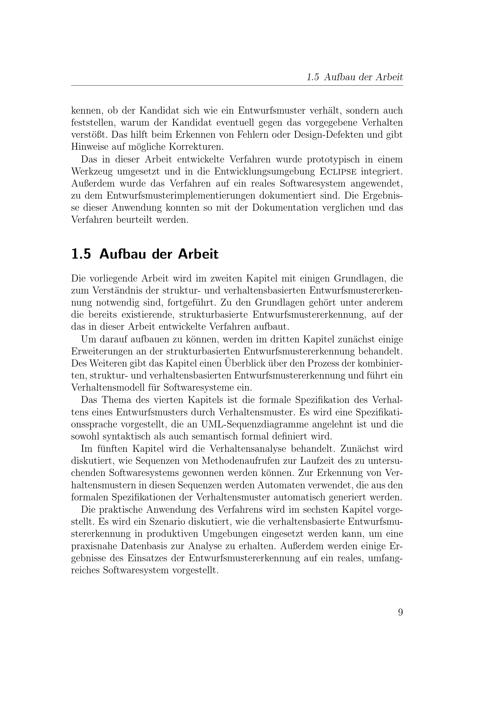 Struktur- und verhaltensbasierte Entwurfsmustererkennung / von Lothar Wendehals