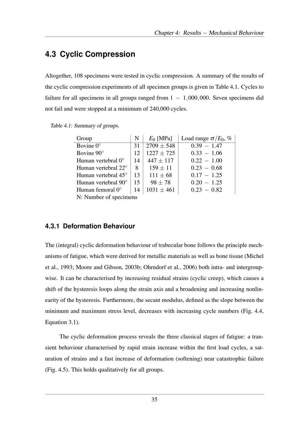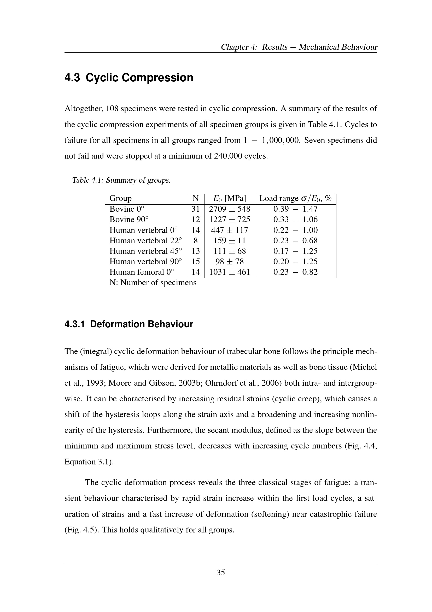 Cyclic deformation and fatigue behaviour in cancellous bone