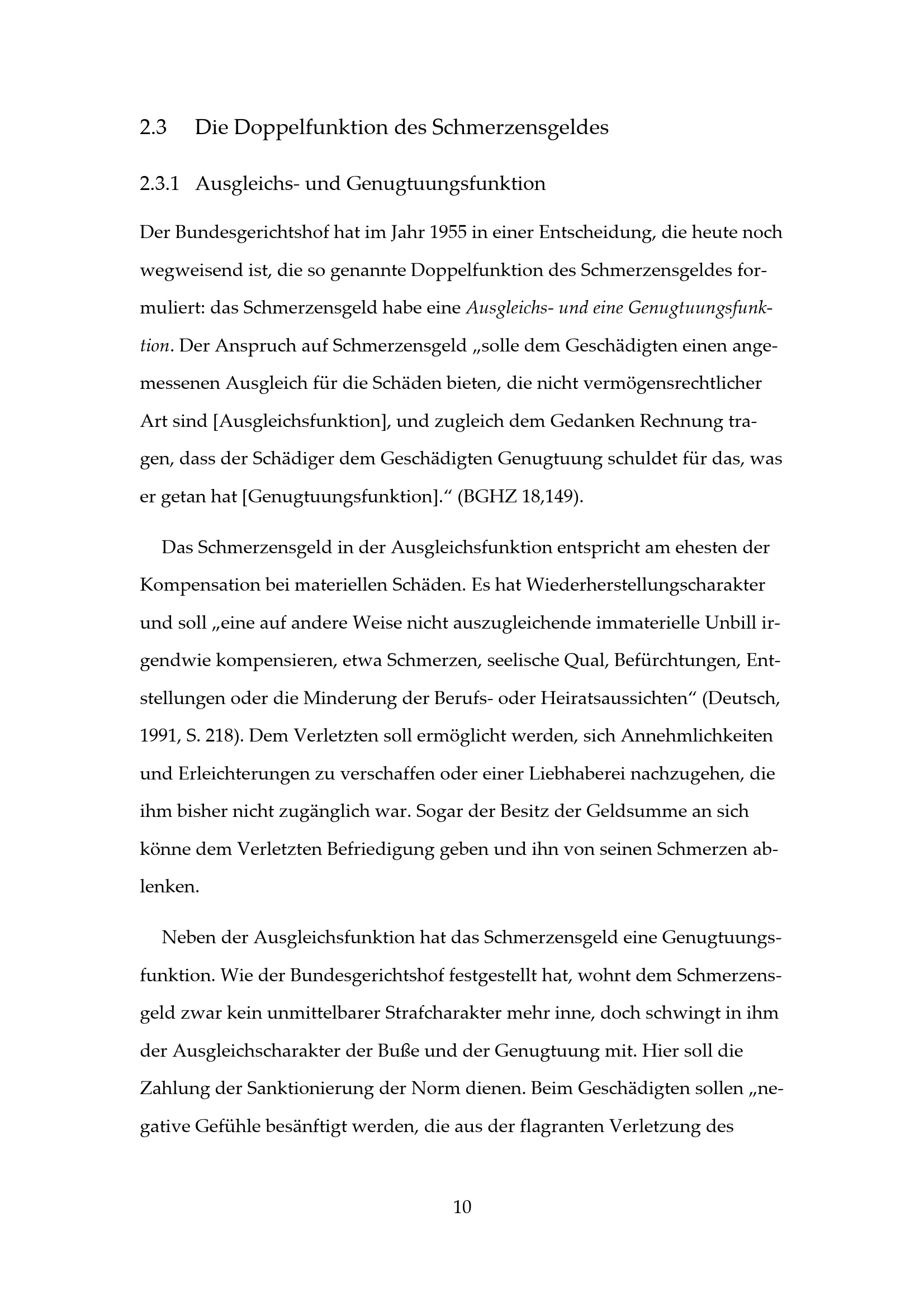 2.3.1 Ausgleichs- und Genugtuungsfunktion