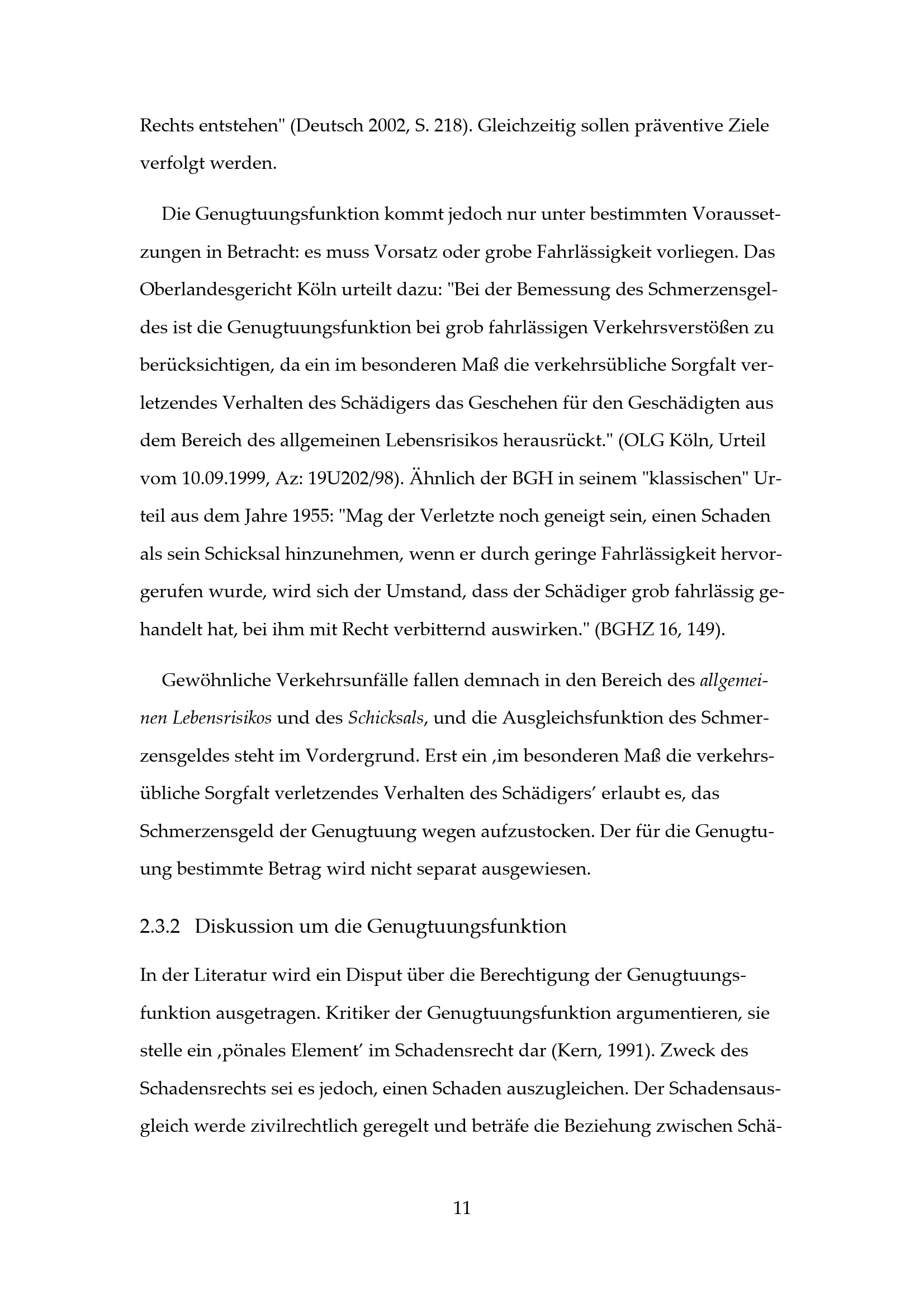 2.3.2 Diskussion um die Genugtuungsfunktion