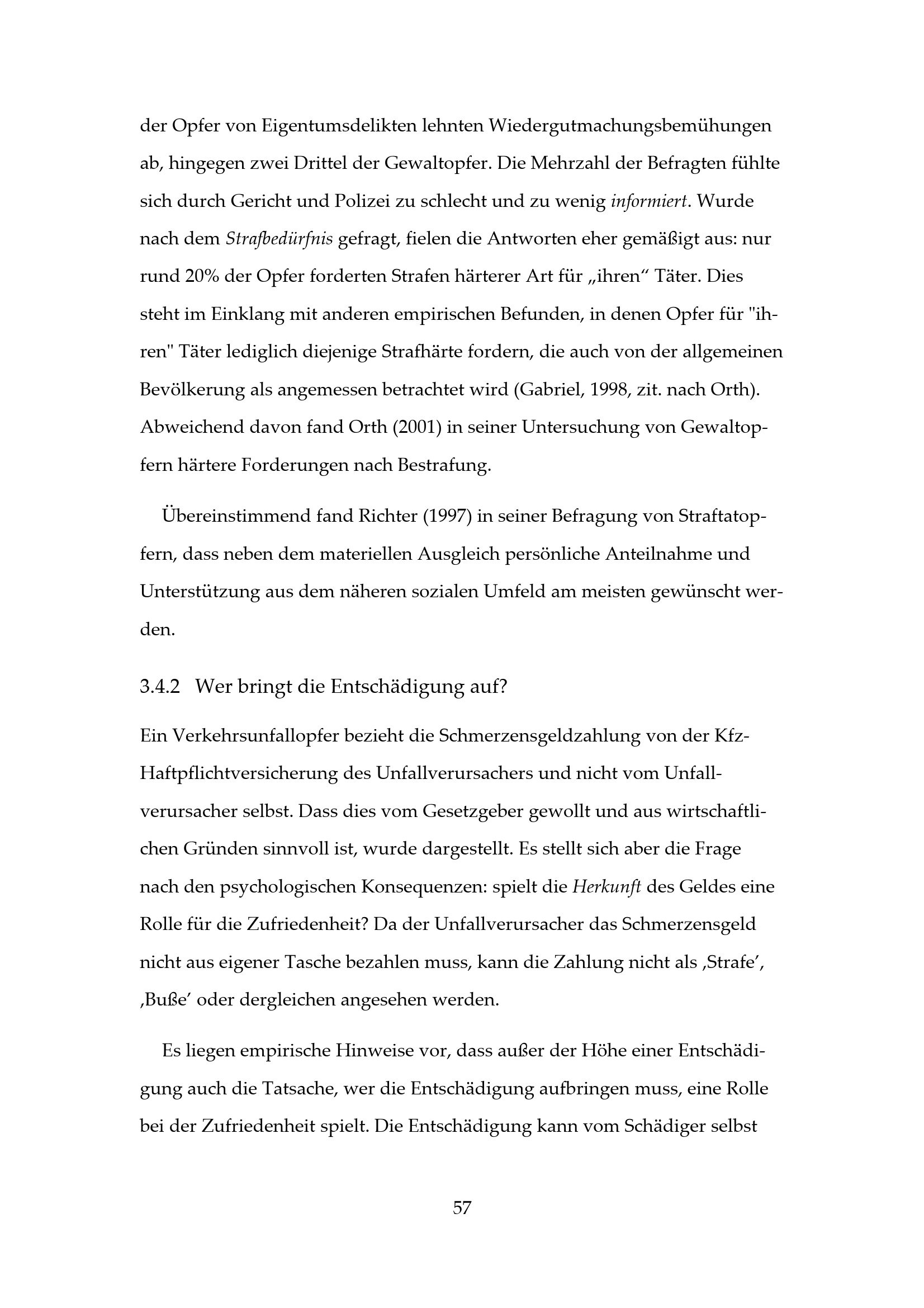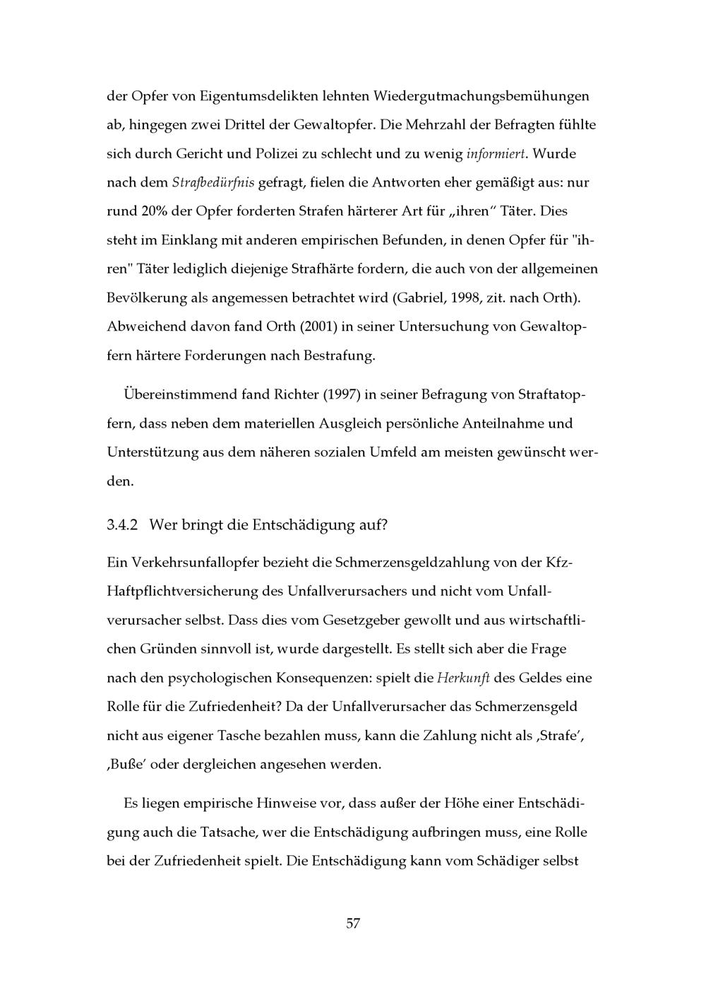 Zufriedenheit von Schmerzensgeldempfängern nach einem Verkehrsunfall : eine psychologische Studie / von Beate Kammerer