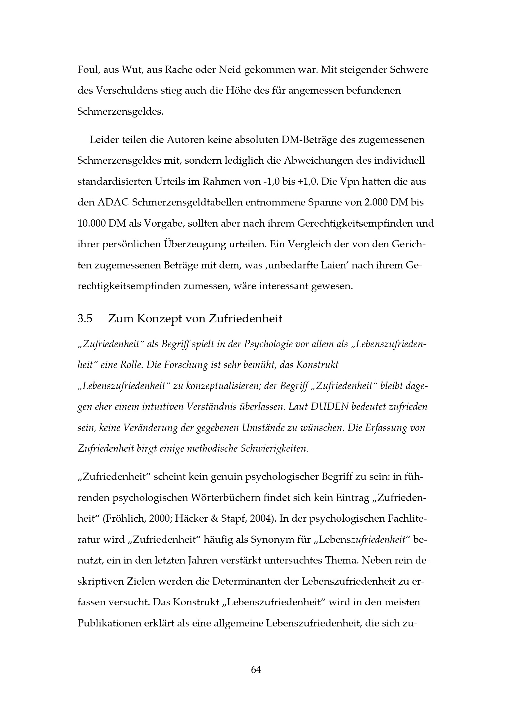 Zufriedenheit von Schmerzensgeldempfängern nach einem Verkehrsunfall : eine psychologische Studie / von Beate Kammerer