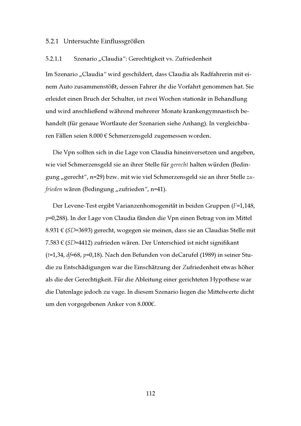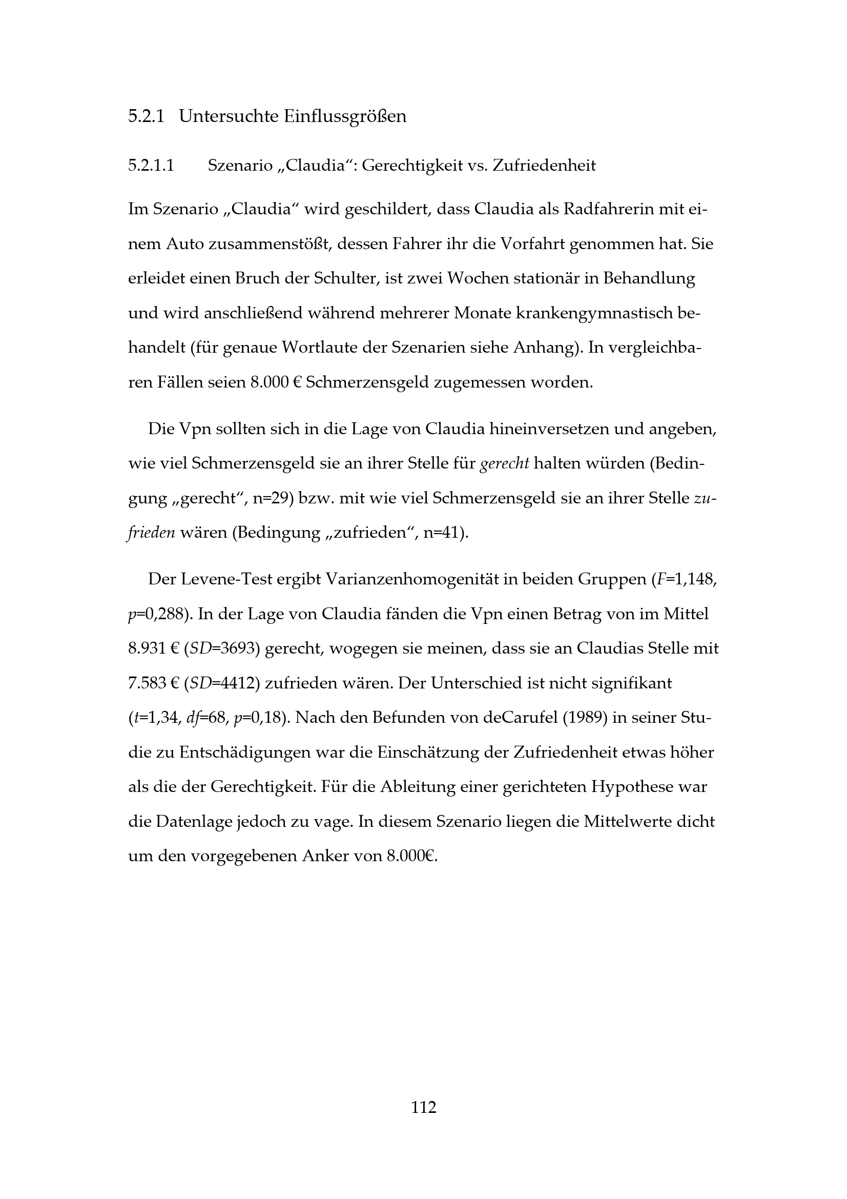 5.2.1.1 Szenario „Claudia“: Gerechtigkeit vs. Zufriedenheit