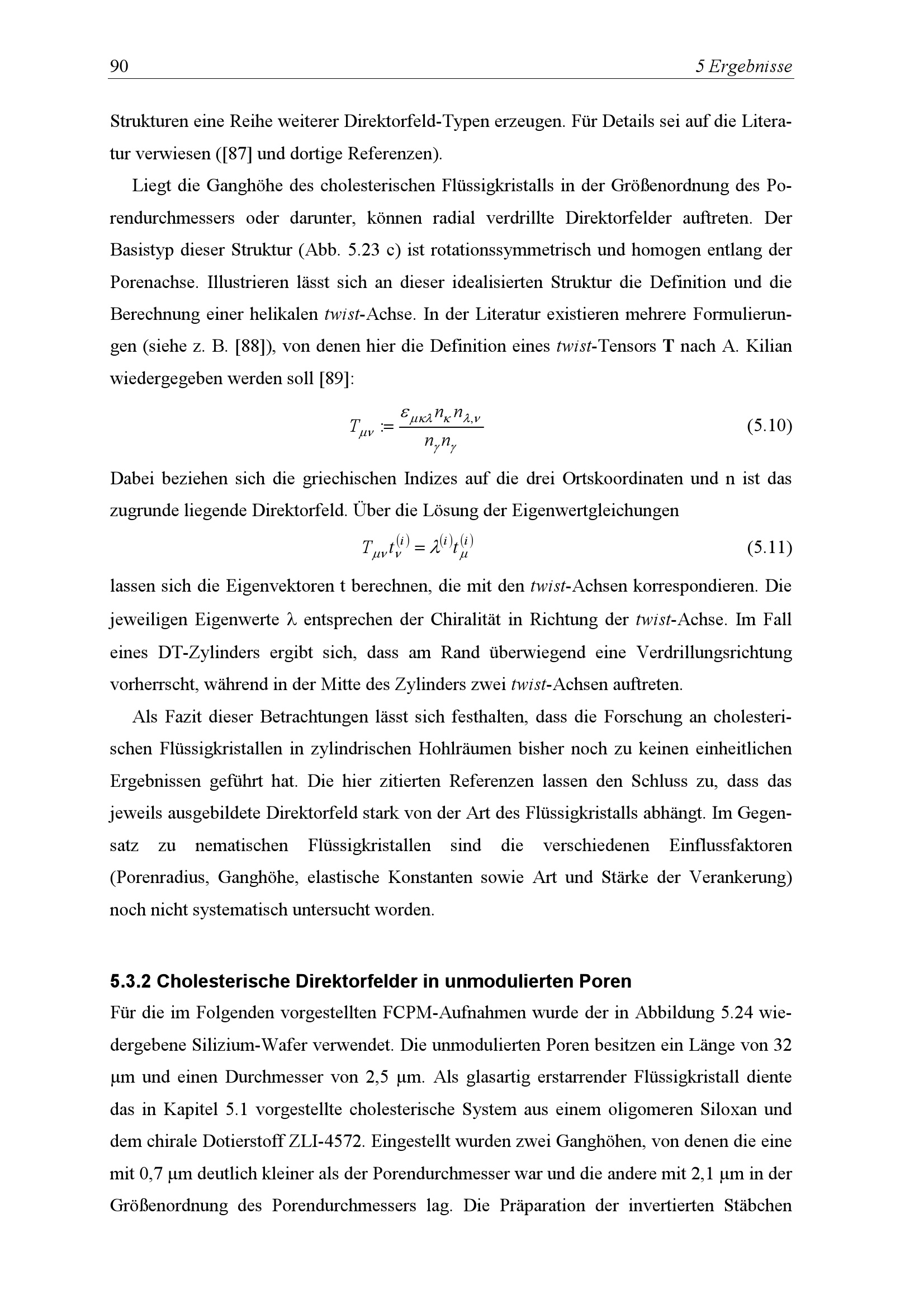 5.3.2 Cholesterische Direktorfelder in unmodulierten Poren