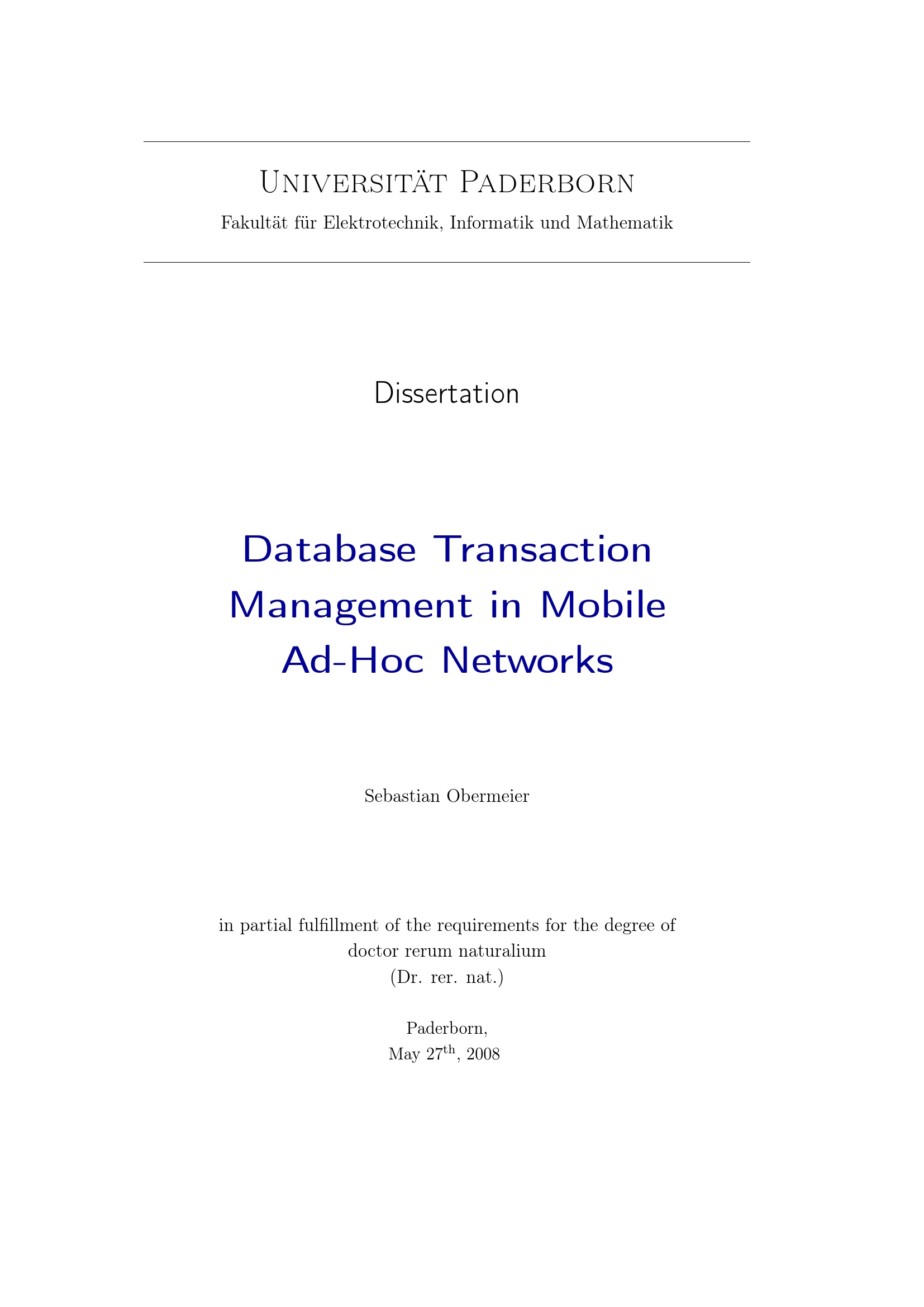 Database transaction management in mobile ad-hoc networks / Sebastian Obermeier