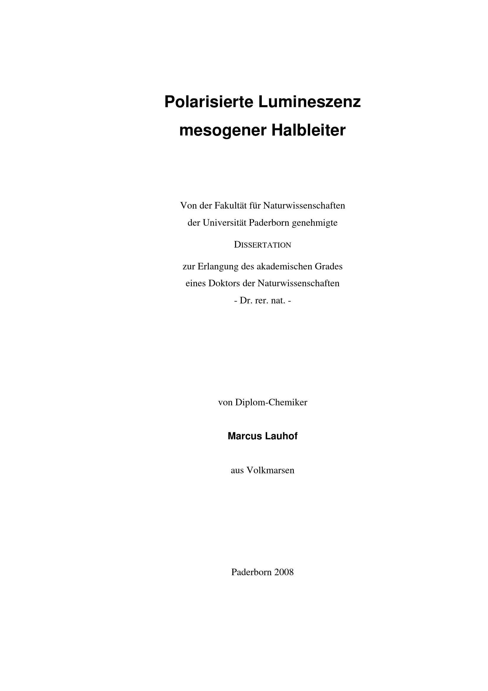Polarisierte Lumineszenz mesogener Halbleiter / von Marcus Lauhof
