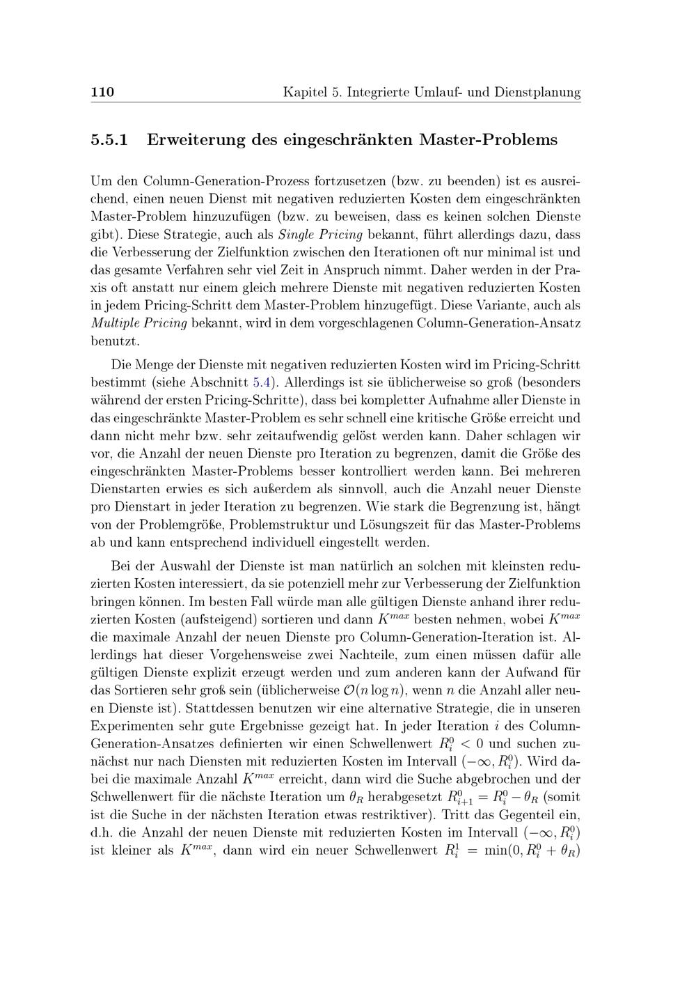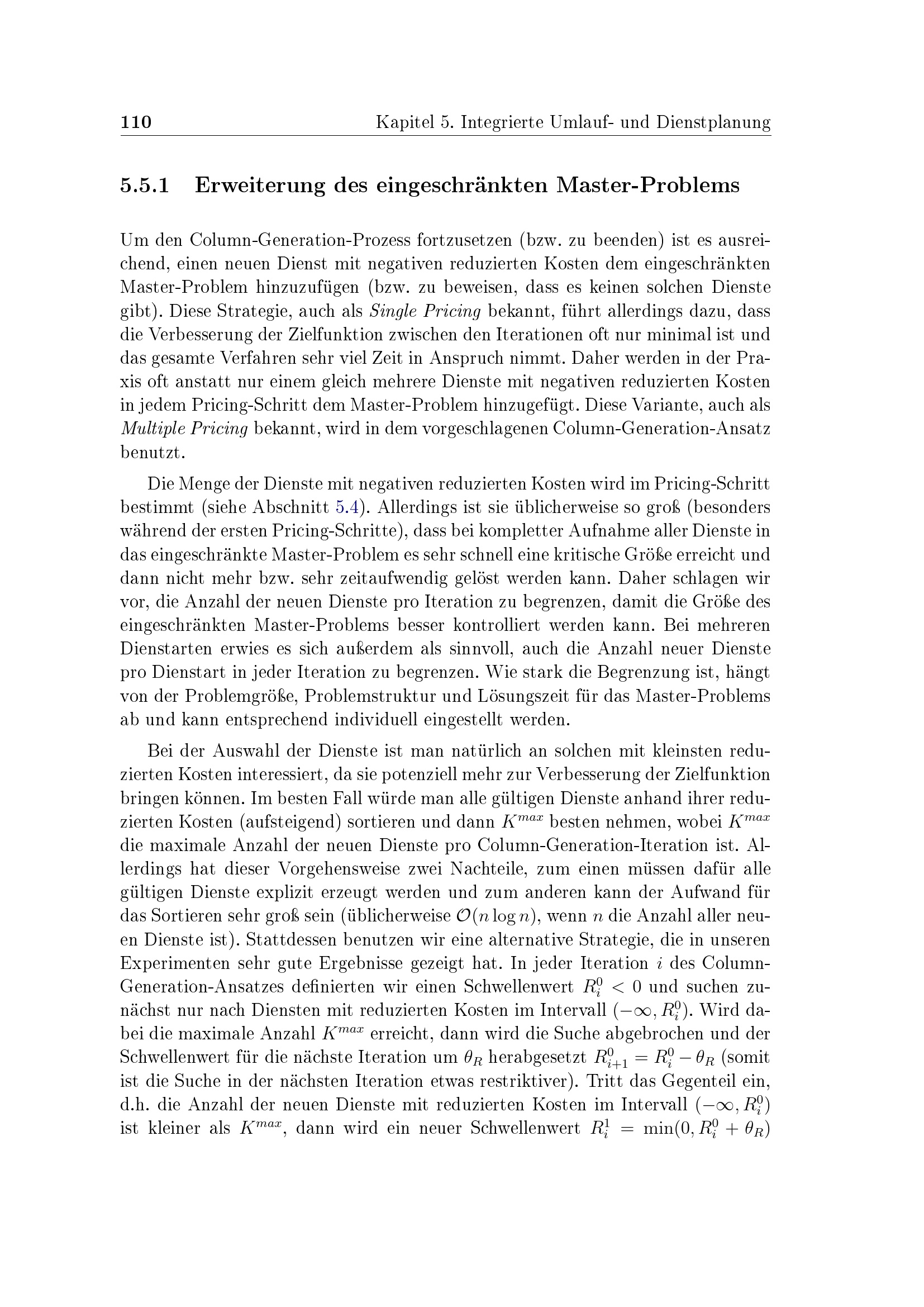 Erweiterung des eingeschränkten Master-Problems