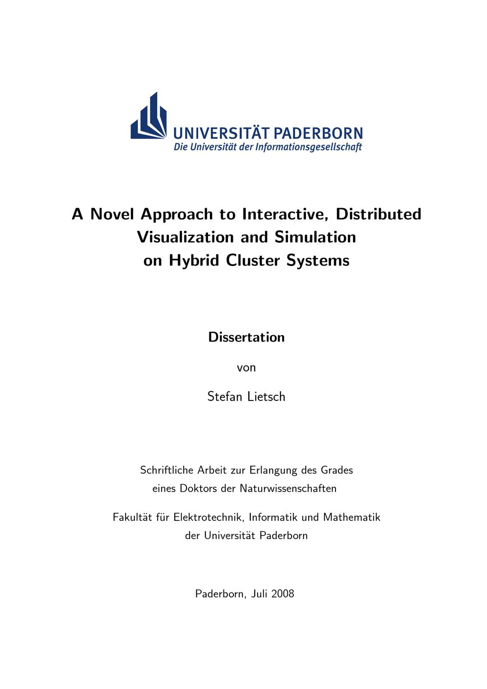 A novel approach to interactive, distributed visualization and simulation on hybrid cluster systems / Stefan Lietsch