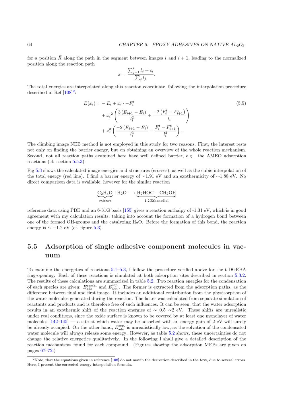 5.5 Adsorption of single adhesive component molecules in vacuum