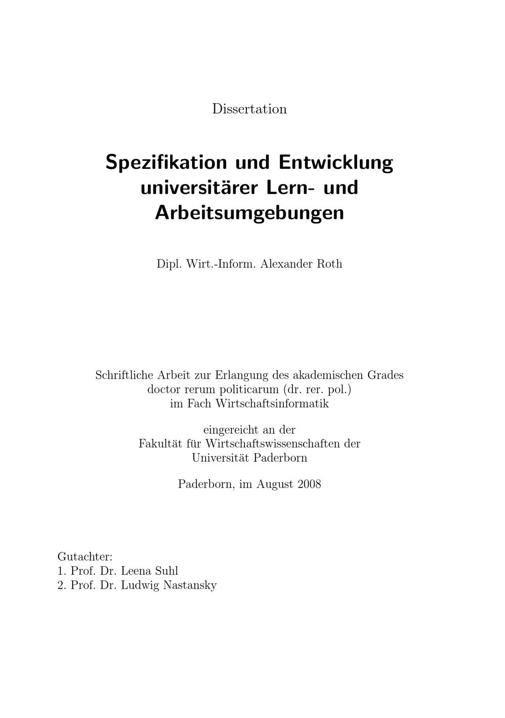 Spezifikation und Entwicklung universitärer Lern- und Arbeitsumgebungen / Alexander Roth