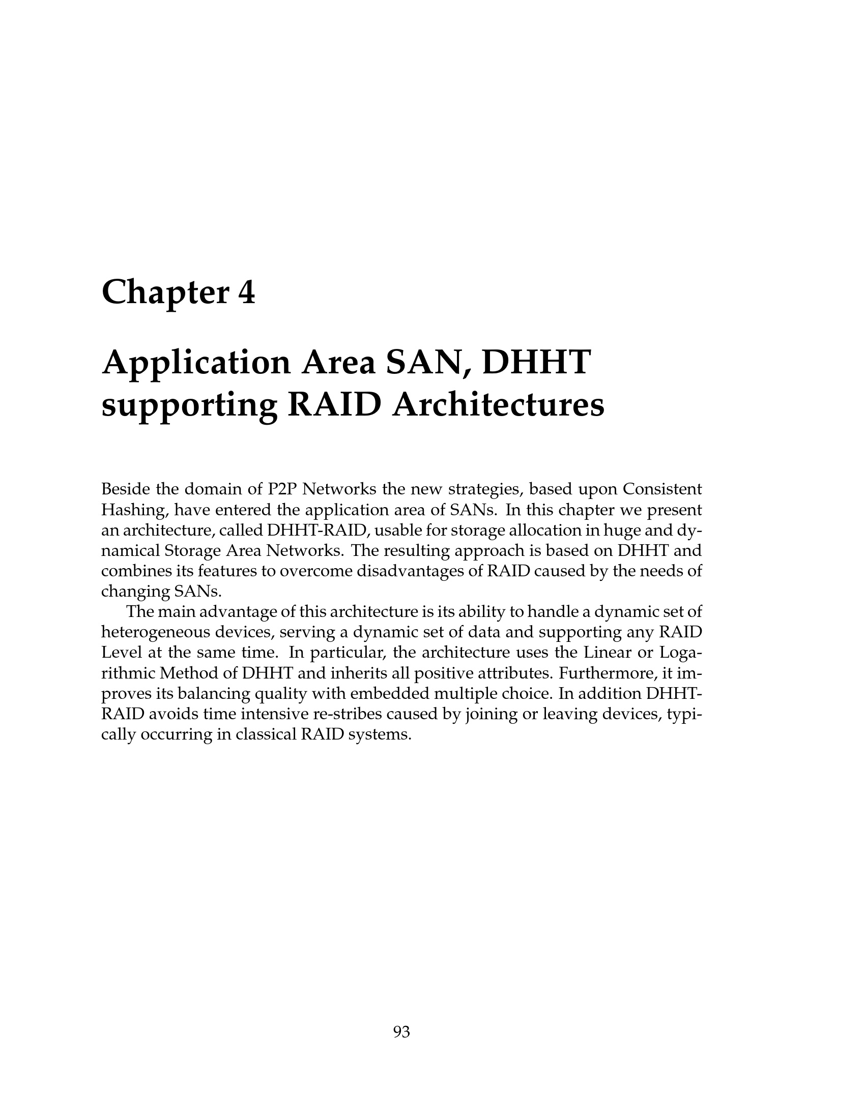 Application Area SAN, DHHT supporting RAID Architectures